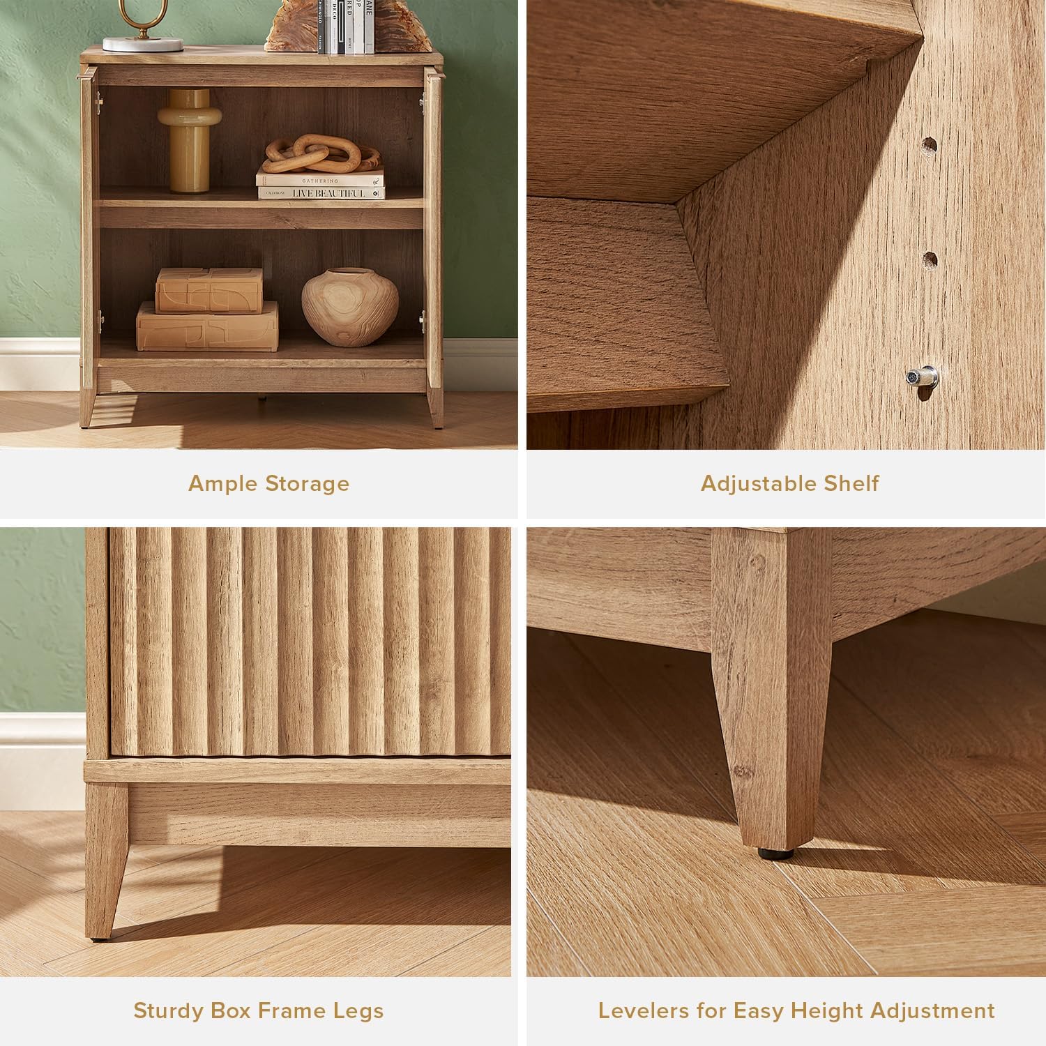 mopio Brooklyn Storage Cabinet, Modern Farmhouse Entryway Accent Case, Buffet Sideboard, Console Table, Credenza, Wood Modular Organizer with Doors & Shelf, Fluted Panel Cupboard (Oak, Single)