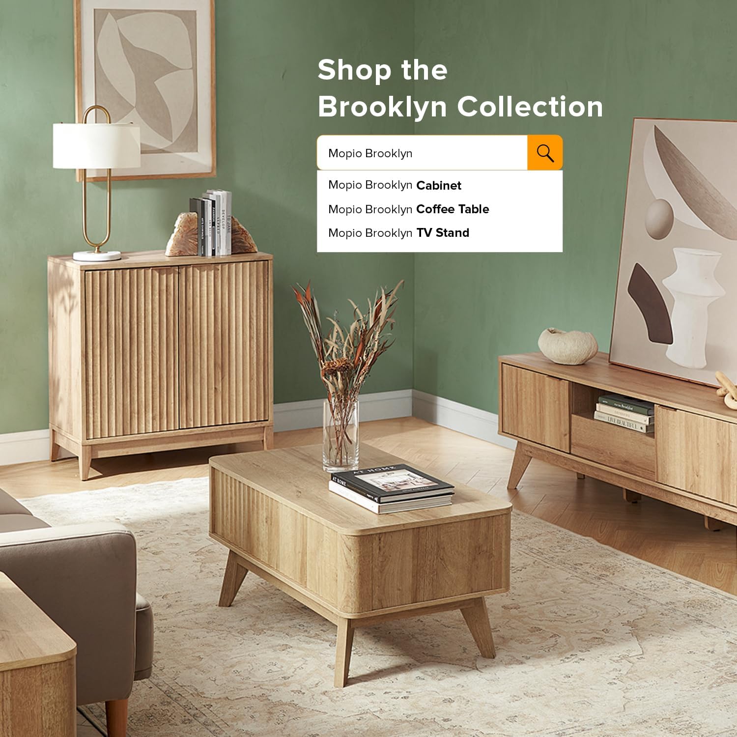 mopio Brooklyn Storage Cabinet, Modern Farmhouse Entryway Accent Case, Buffet Sideboard, Console Table, Credenza, Wood Modular Organizer with Doors & Shelf, Fluted Panel Cupboard (Oak, Set of 2)