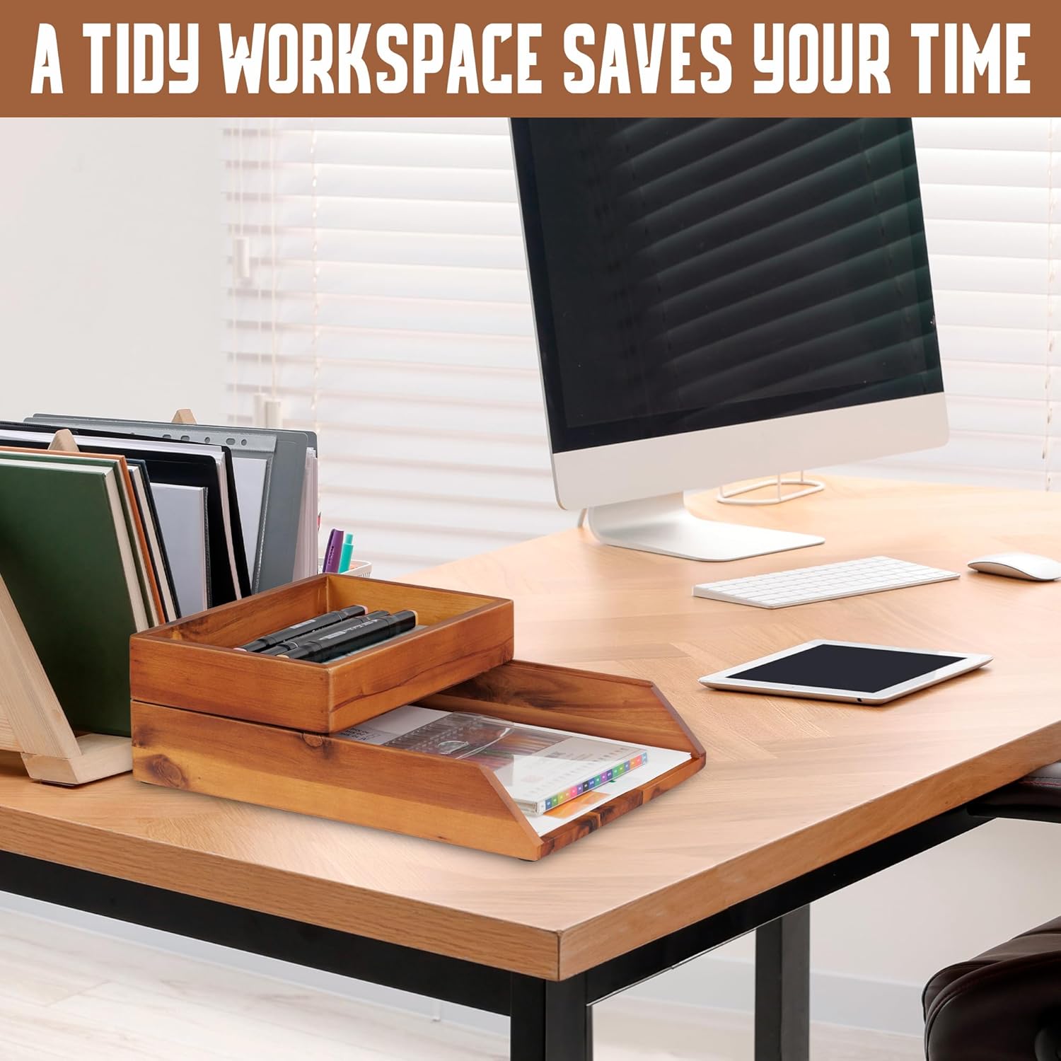 - A Tidy Workspace Saves Your Time: When every item has a designated place, you are guaranteed to waste less time when switching between projects or tasks. Additionally, our office desk organizer is made of brown acacia wood, which brings a cozy atmosphere to your room.