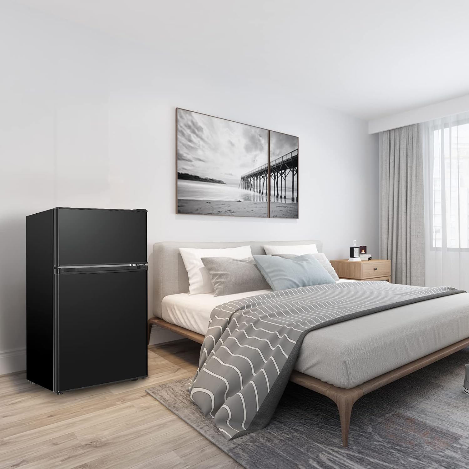 Mini Fridge With Freezer,3.2 Cu.Ft Compact Refrigerator,Mini Refrigerator With 2 Doors For Bedroom,Office,Kitchen,Apartment,Dorm(black.)