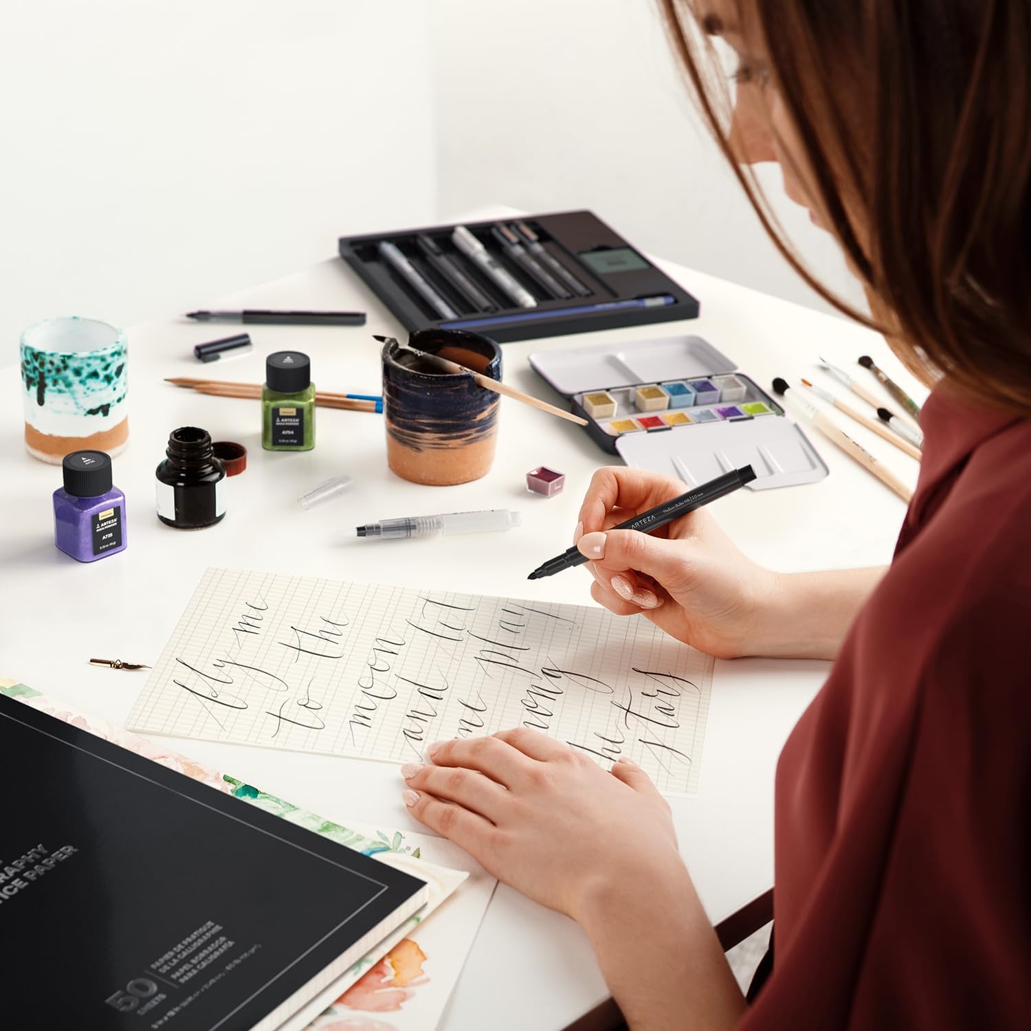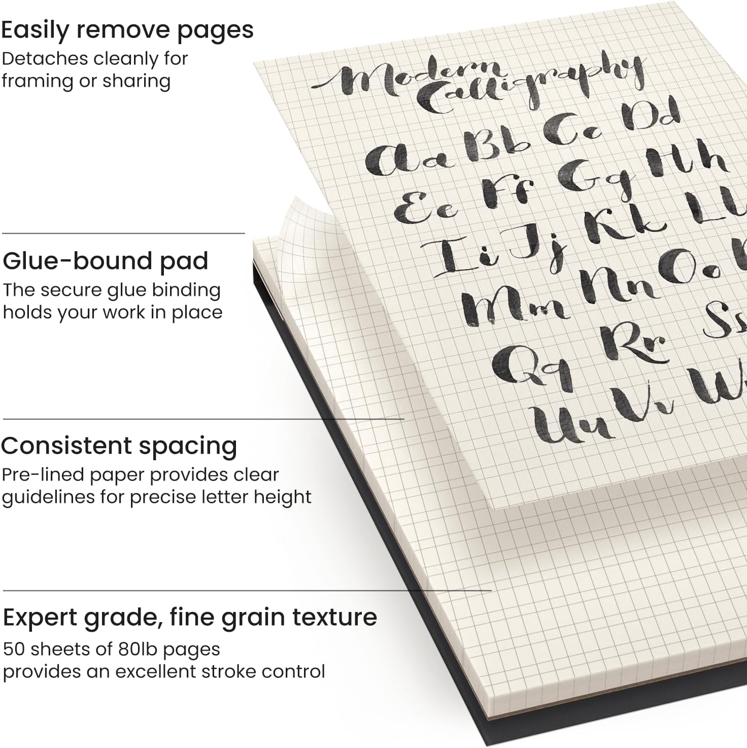 - Smooth Surface for Clean Lettering Practice. Featuring 130 GSM paper with light texture, each sheet offers bleed resistance and control—suitable for dip pens, brush pens, and fountain pen calligraphy.