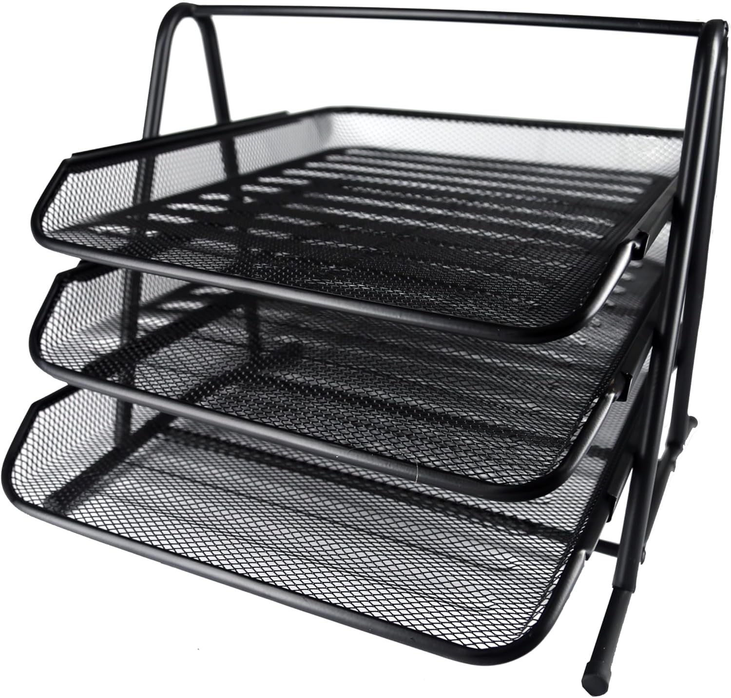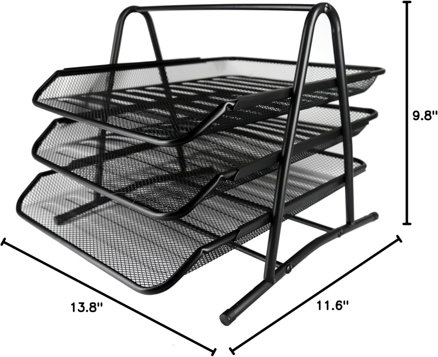 Huron Desktop Horizontal File Binder Organizer Storage Letter Tray, 3 Slot, Black Steel Mesh