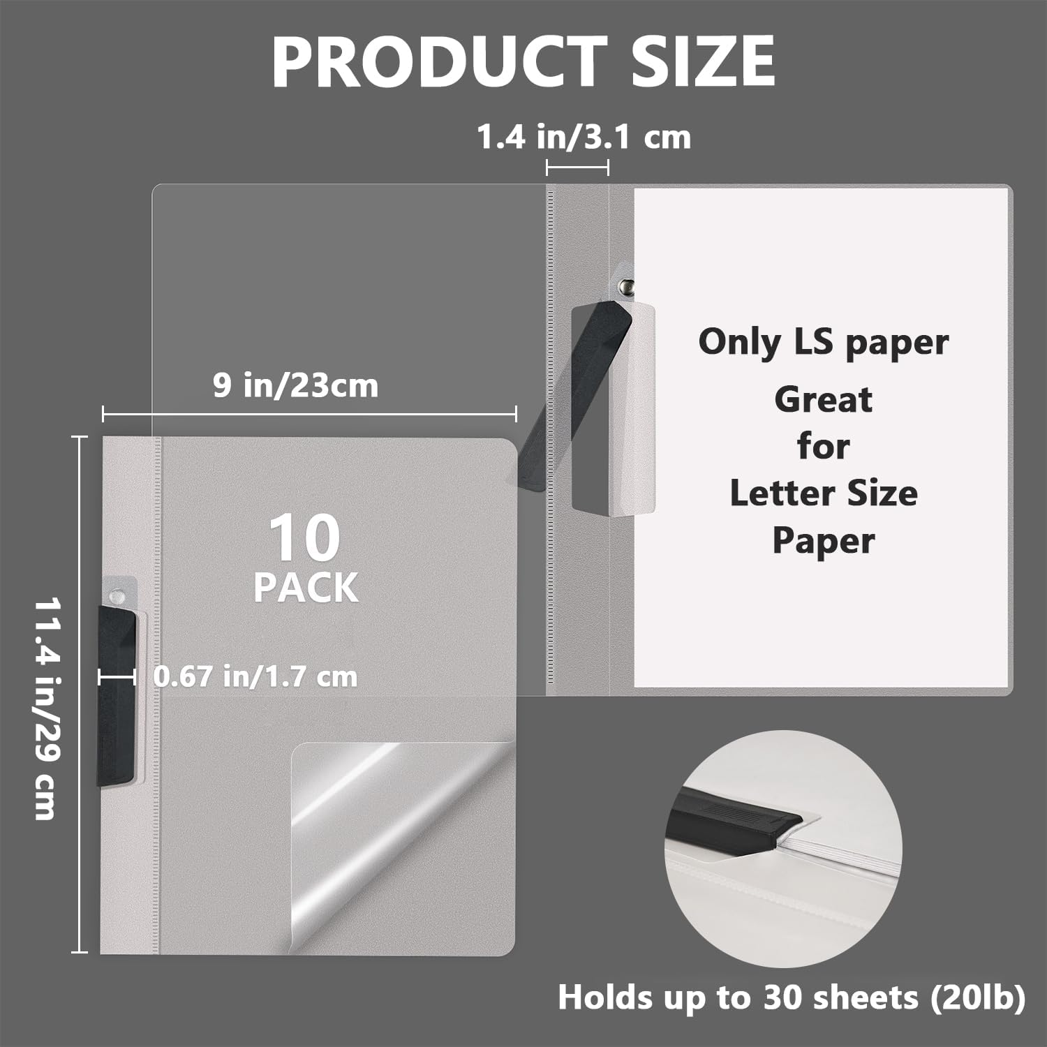 - Rock-Solid Paper Hold: This 10-pack of swing clip report covers (9" x 11.4") fits letter size papers, holding up to 30 sheets (20lb). The heavy-duty swing clip locks papers tight – they won't fall out no matter how much you shake it. Carry your docs in this cover with confidence, whether walking, commuting, or traveling.