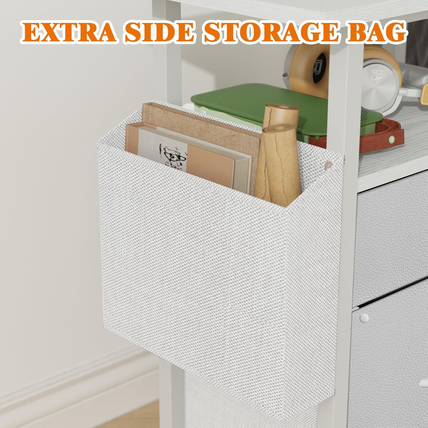 2 Fabric Drawer File Cabinet with 24'' Extended Desktop, Mobile Filing Cabinet, Rolling File Cabinet with Side Bag, Fits A4 Size, Home Office, White