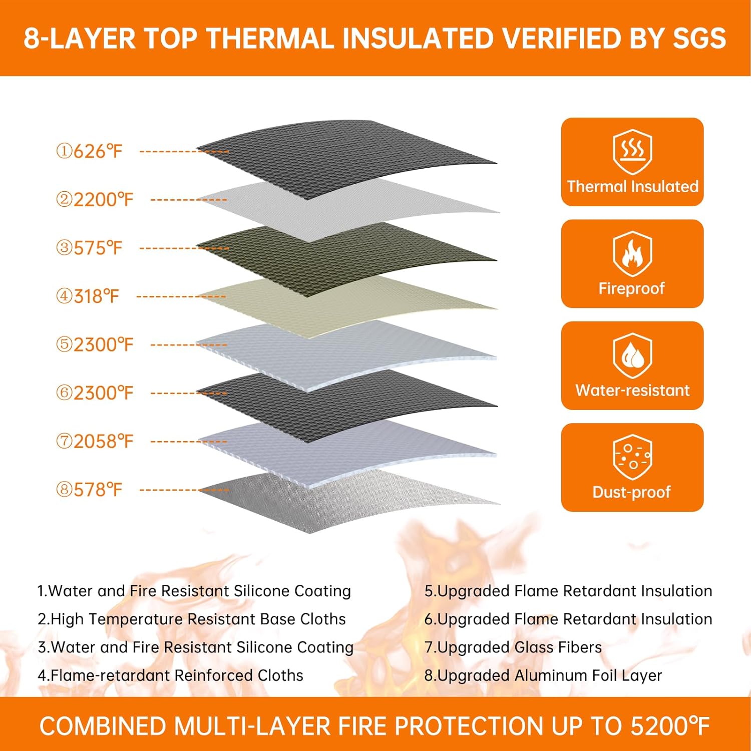 - Material : Thickened silicone coated fireproof cotton material and aluminum foil