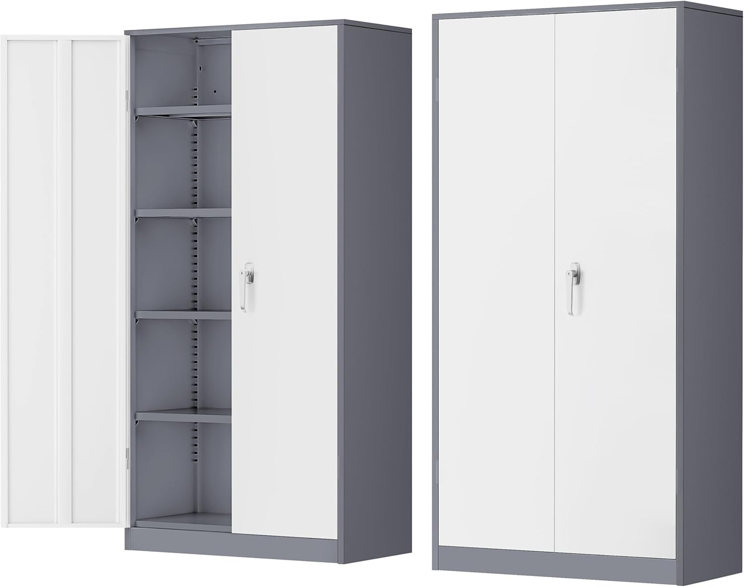 INTERGREAT Garage Storage Cabinets with Doors and Shelves,72" Grey White Steel Tool Locking Cabinet, Metal Storage Cabinet for Home Office, Warehouse, School