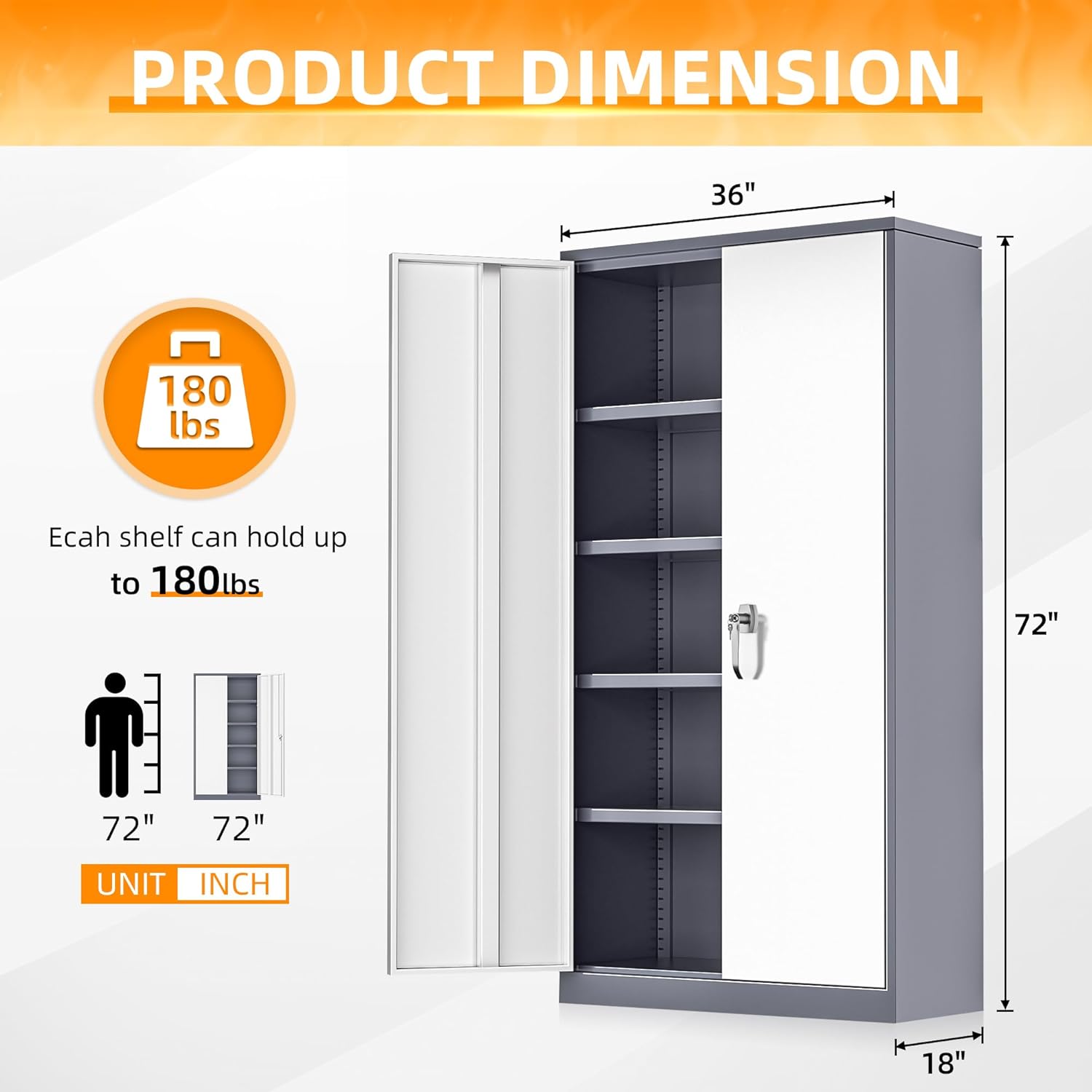 - 【INTERGREAT】: IMetal locked Cabinets with 72 inch×36 inch×18 inch (H x W x D), 2 wing doors, 180°opening angle, will be shipped out asap, any questions, just call our professional team, will try our best to solve the problem