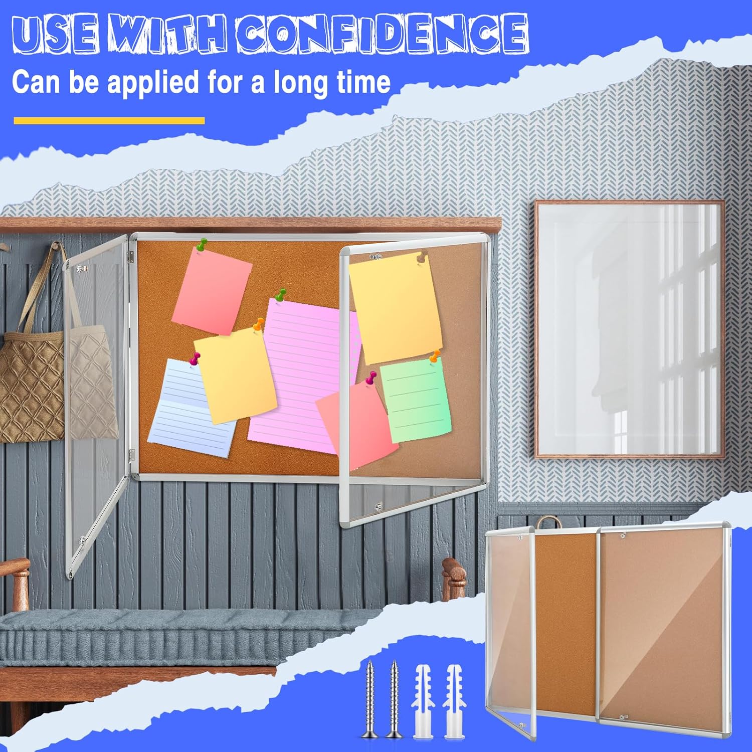 - Wide Application: the bulletin board cabinet is suitable for schools, offices, shops, homes, apartments, hospitals, dormitories, classes and other public places, and can be applied for multiple purposes, such as posting notice and announcements, displaying artwork or photos, and presenting public information