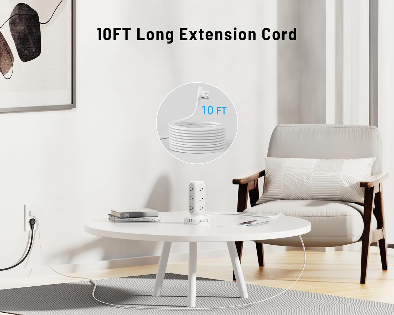 - 【Safer Surge Protector Power Strip】- The 1200J surge protector is made of 1382°F fire-resistant ABS+PC material, built in overload protection, can protect your expensive electronics, providing you with a safe and reliable charging environment. Equipped with a on/off switch, you can switch off when going out, more energy saving.