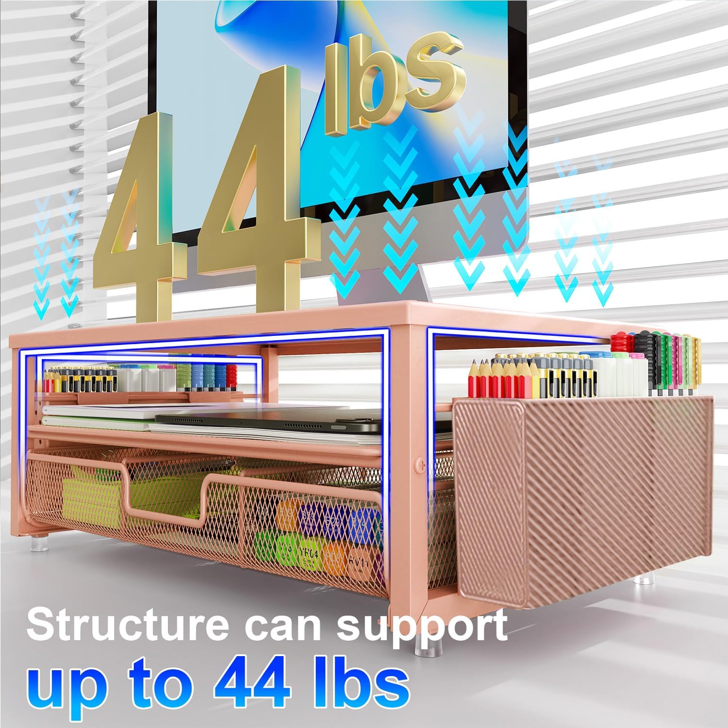gianotter Desk Organizers and Accessories, Monitor Stand with Drawer and 2 Pen Holder, Desktop Organizer Suitable for Offices and Dormitories (Rose Gold)