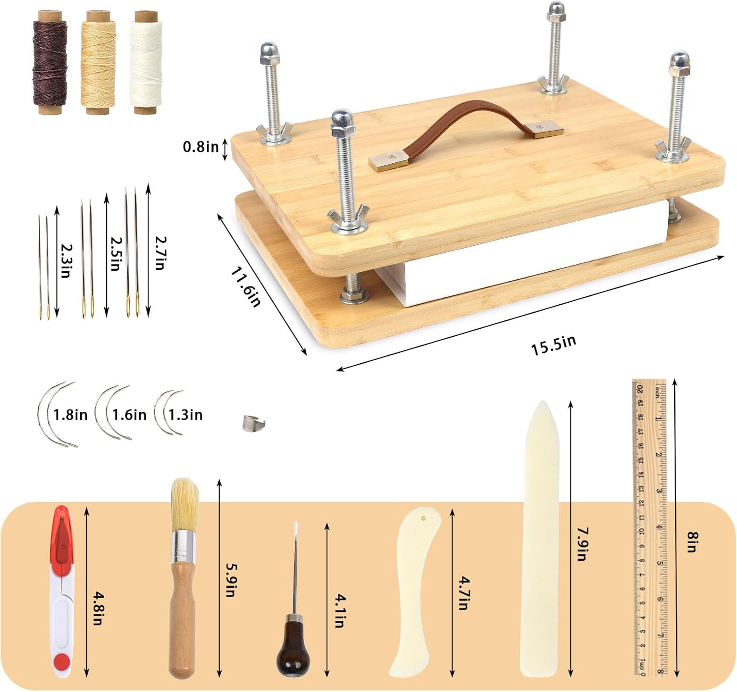 35 PCS Book Press Bookbinding Kit, 15.5" X 11.6" Large Wooden Bamboo Book Binding Tool, Portable Press Materials for Handmade DIY Flower