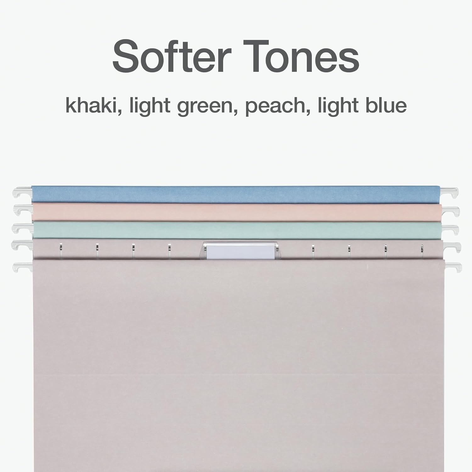 - Work faster and smarter; color hanging folders in calming pastels (khaki, peach, light blue and light green) let you spot the right file through color association