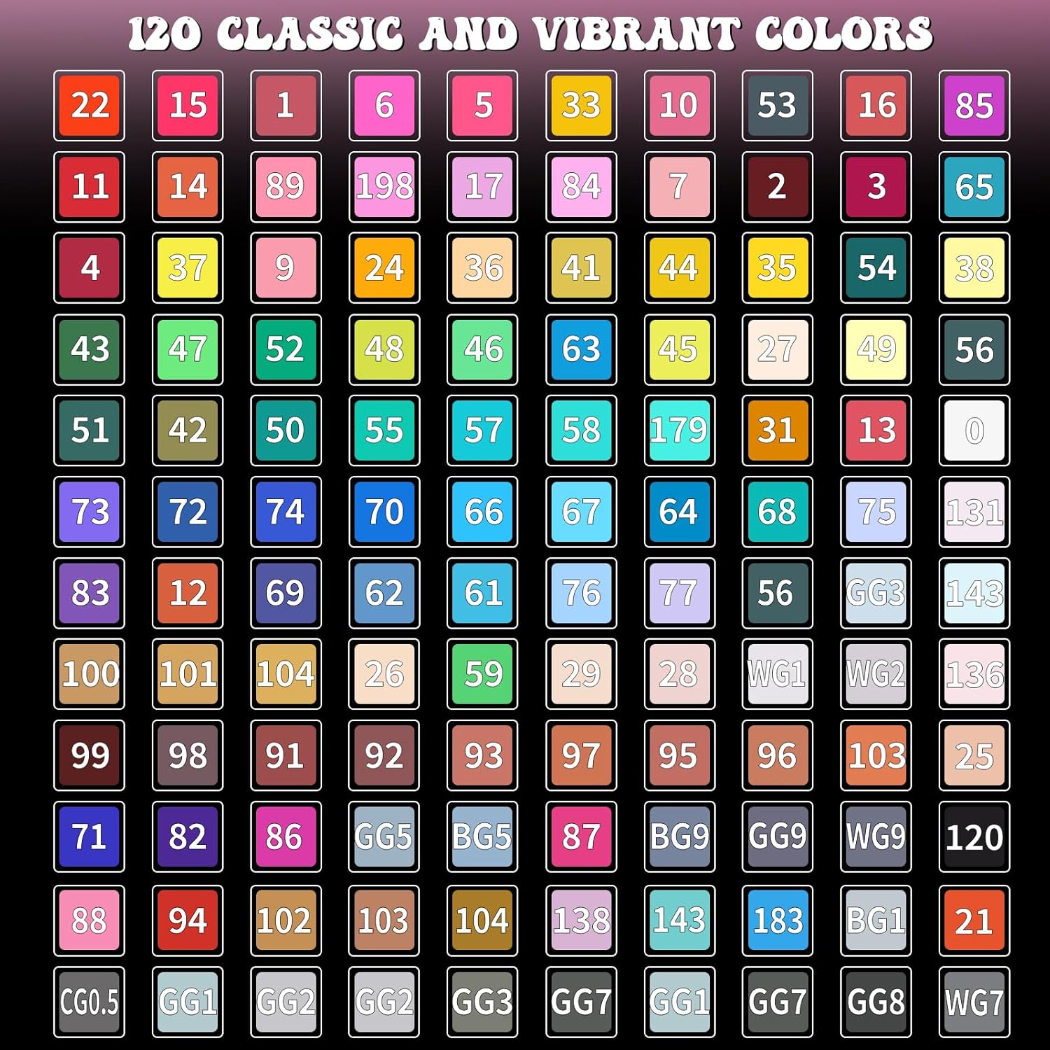 120-Colors Alcohol Based markers, Alcohol Markers Set, Dual Tip Alcohol Sketching Drawing Markers Animation for Adults Kids