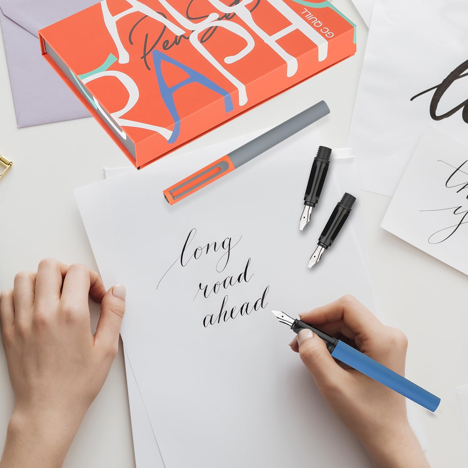 - 5 CALLIGRAPHY NIBS - This set includes 2 fountain pens with 5 different size calligraphy nibs, suitable for a wide range of lettering styles.