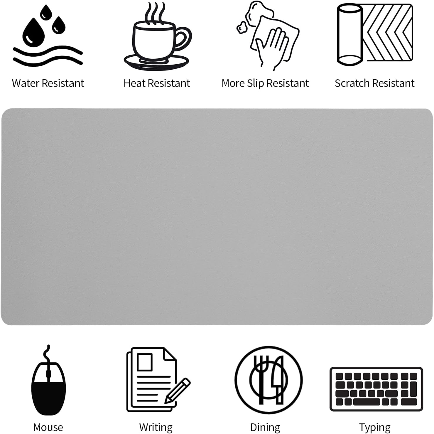 - 【Waterproof & Easy to Clean】The PU leather material keyboard mat is waterproof and heat resistant, easy to clean. It can perfectly protect your desktop from drinks, ink and other liquids. For cleaning, just wipe its surface stains with a damp cloth. Please note that its suede backing is not waterproof!