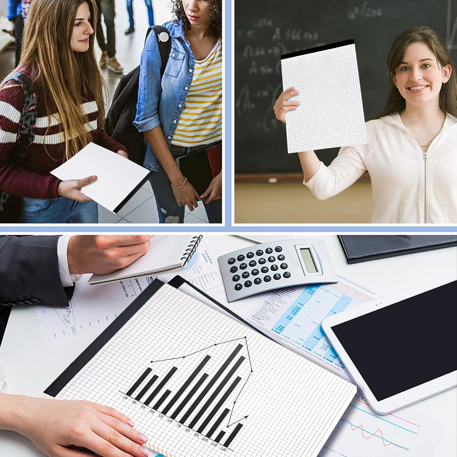 - For Schools & Offices - The grid lines leave letters, numbers, and diagrams clearly legible. Beyond Math Equations - This letter-sized grid paper pad isn't just for solving math problems.