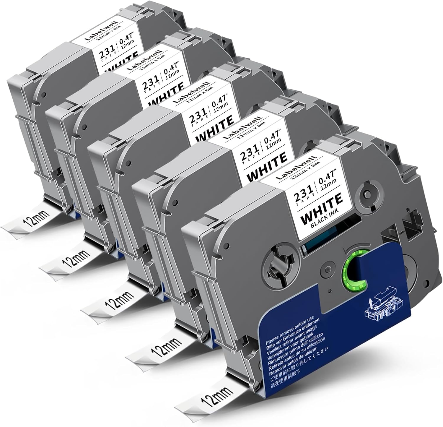 - Package Contents: 5-Pack Compatible for P Touch TZe-231 TZ231 TZ Label Maker Tape, Black on White (Black Print on White Tape)