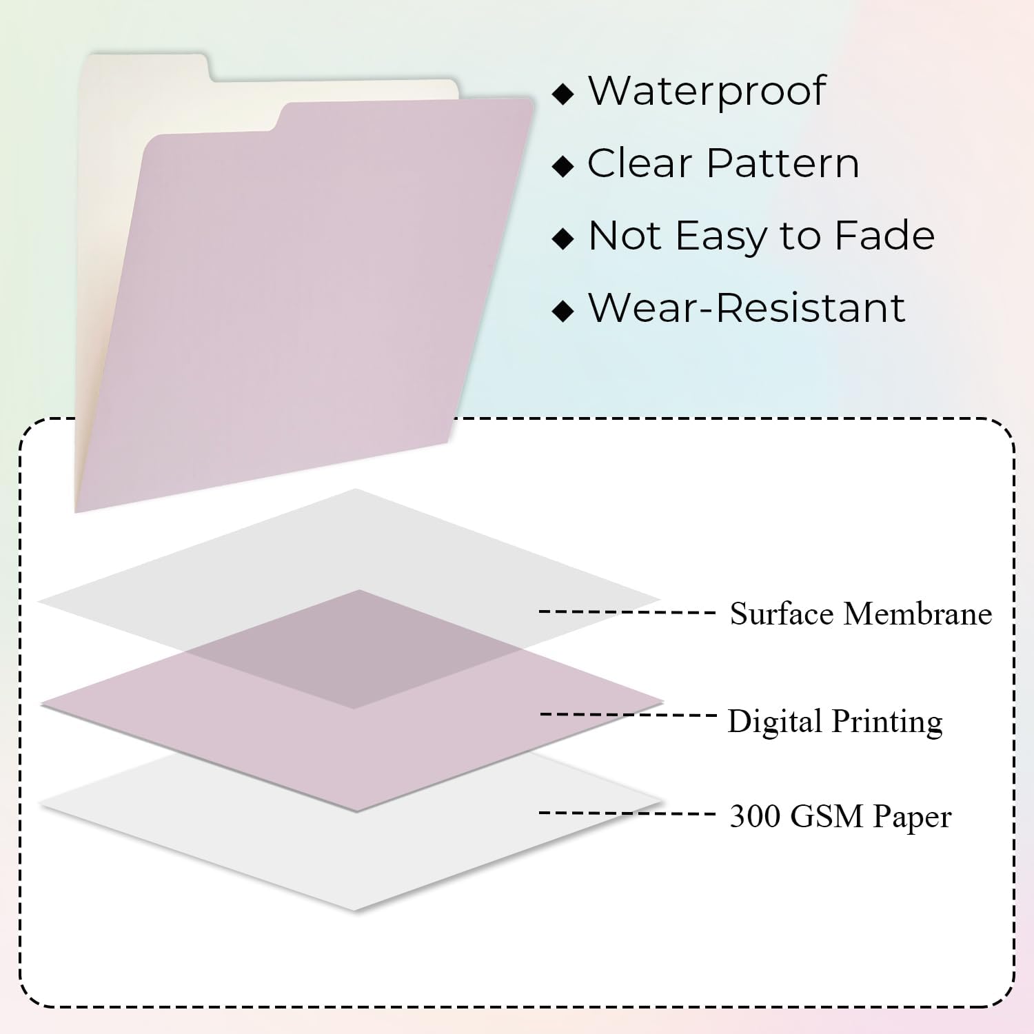 - Heavyweight Material - Decorative file folders are made of 300 GSM recycled paper. Surface membrane technology makes the digital printing pattern of pretty file folders not easy to fade, waterproof, and more wear-resistant