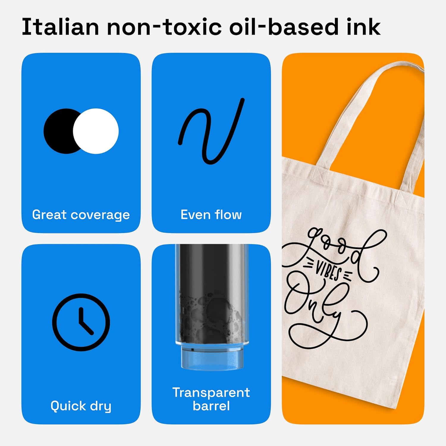 - Multiple Surfaces: Use these oil paint pens as oil markers for plastic and glass or as oil based fabric markers for clothes. Each black pen is water-resistant. They’re also good for leather, vinyl, or epoxy resin. And the nibs are solid, even on rocks!