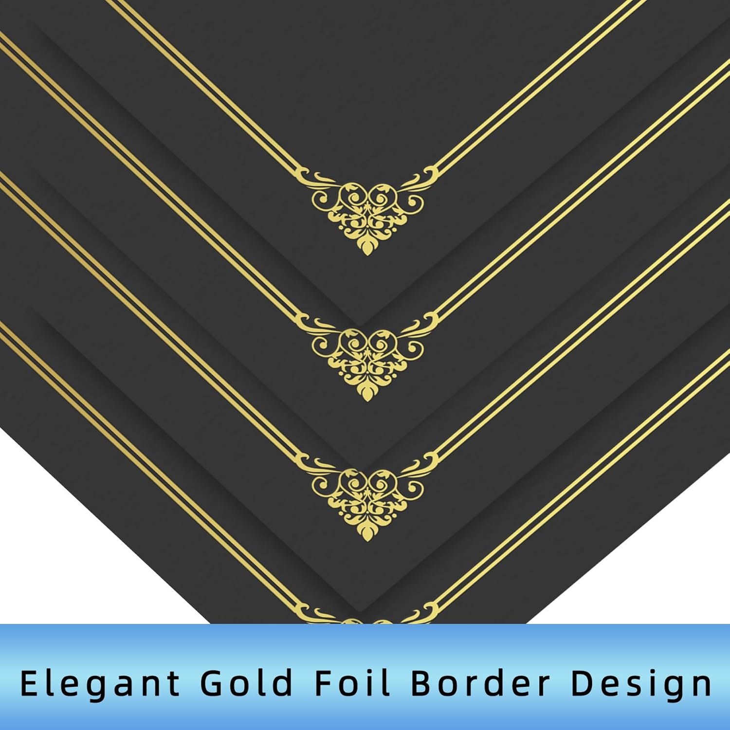 - Elegant Certificate Cover - Black front with gold foil trim for a classy and professional look. Back is pure black, making it easy to distinguish front and back. Perfect for presentations, award ceremonies, and summer camps