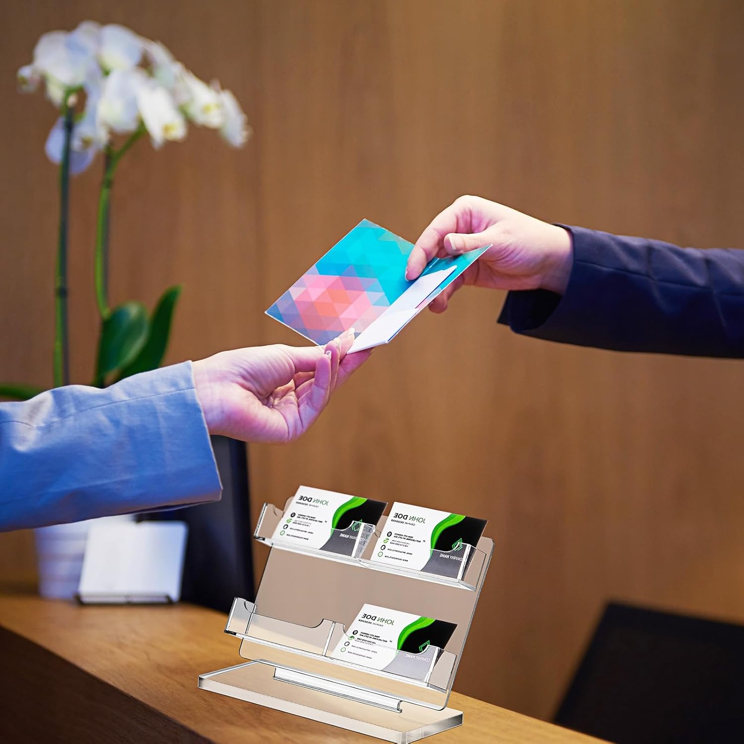 - Modern Transparent Design: made of high definition clear acrylic, our acrylic desk business card organizer can better display your business cards for maximum visibility; The transparent design makes it easy to identify and select the right card; The elegant and stylish business card holder display serves as a functional and decorative piece that adds a touch of sophistication to your desk or tabletop