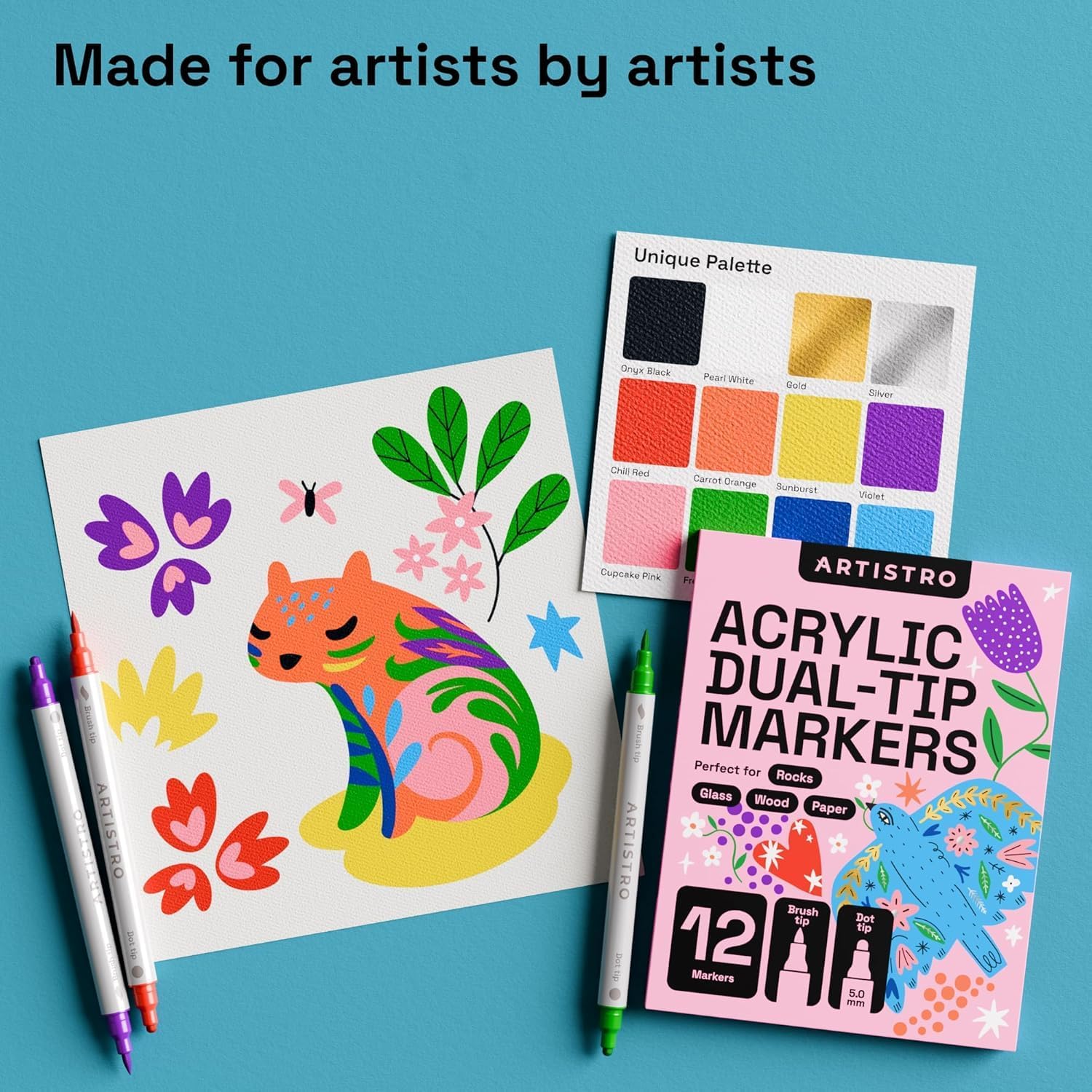 ARTISTRO 12 Wine Glass Acrylic Paint Markers - Washable Non-Toxic Dual Tip Acrylic Paint Pens for Car Window, Mirror, Ceramic