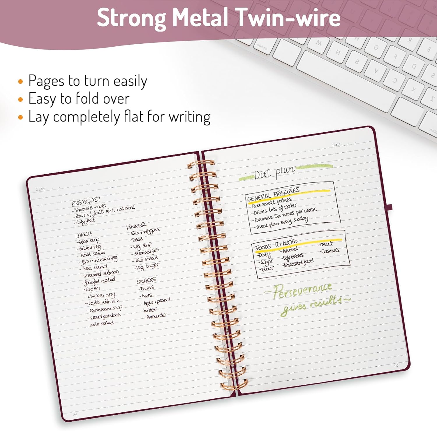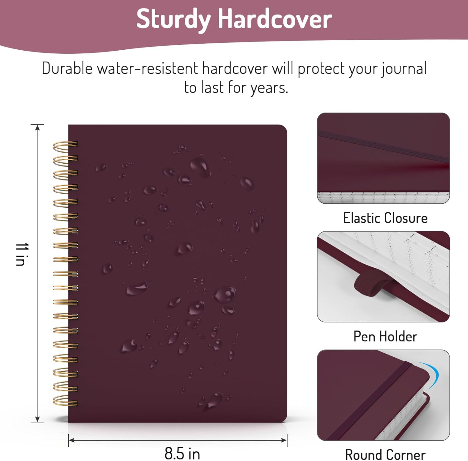 - Strong Metal Twin-wire: Feature a super durable Golden double wire spiral binding with heavy-duty hardcover; making it easy to fold over and laying the notebook totally flat easily, giving you a better writing experience. The Professional durable hardcover will protect your journal to last for years. Product Dimensions: 11 in (L), 8.5 in (W), 1.0 in (H).
