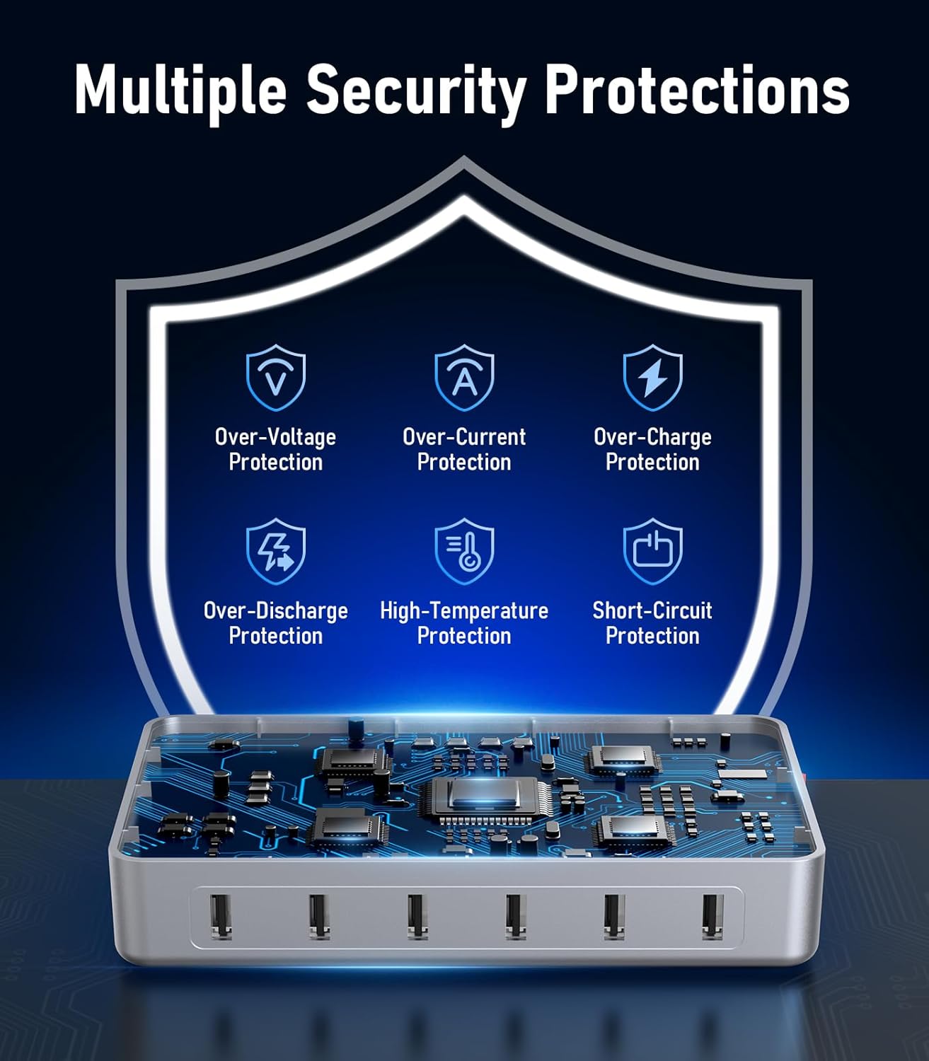 - ăMulti-Scenario ApplicationăThe charging station for apple devices has 6 smart USB ports that put all your devices in one place.Each port provides up to 5V/2.4A of current.The charging dock has an auto-detection feature that assigns the perfect amount of power to each charging device.Perfect for home, office, school, restaurant, and hotel use, it can accommodate all your family's devices