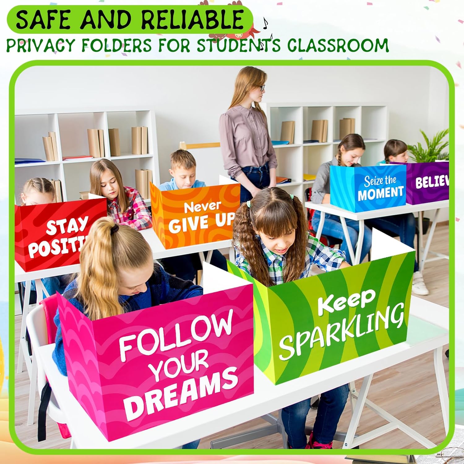 Honoson 24 Pcs Bulk Inspirational Privacy Folders for Students Cardboard Test Privacy Boards Motivational Words Desk Dividers Shield for Classroom School Study Supplies, 6 Styles(Affirmation)