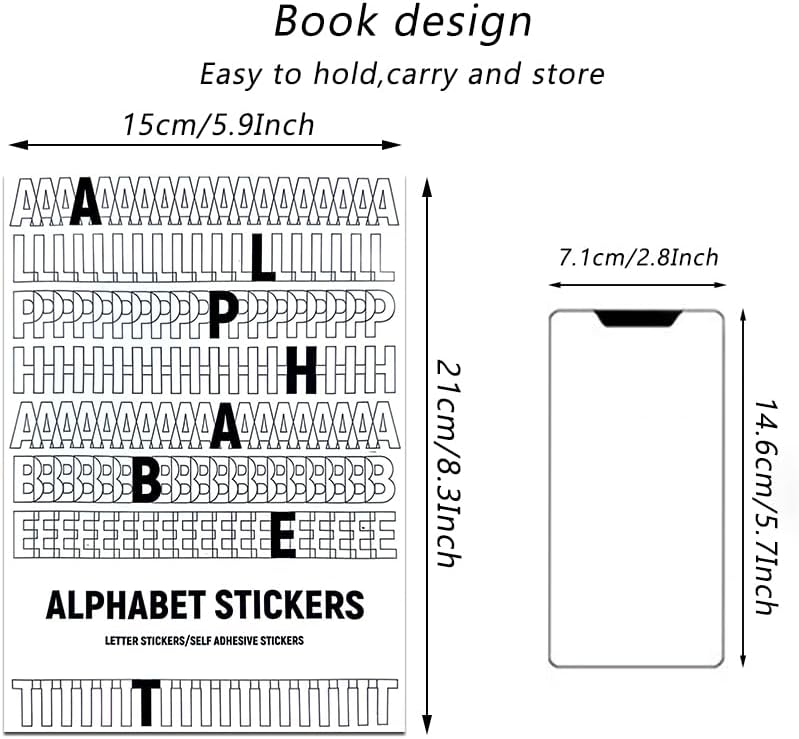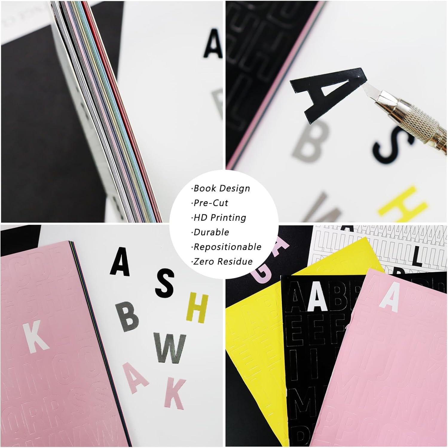 - Book Design and Colorful: In order to make our customer experience more convenient, we had these letter sheets binded and covered to a beautiful book which is easy to hold,carry and store. These alphabet stickers have 9 colors, they are silver,white,black,pink,dark blue,yellow,green,sky blue and red,you can add pops of color to your crafts, making them appealing to look at.