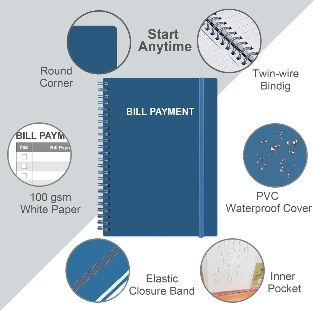 - HIGH QUALITY - The bill payment tracker spiral notebook size of 5.8" x 8.5", just the perfectly size to fit in your backpack, purse or laptop case. Bill payment tracker monthly organizer is used to high quality 100gsm pure white paper, elastic band and a back pocket for extra space. it comes with 3680 entry lines (29 lines per page), make sure you have enough space to take control of your finances.