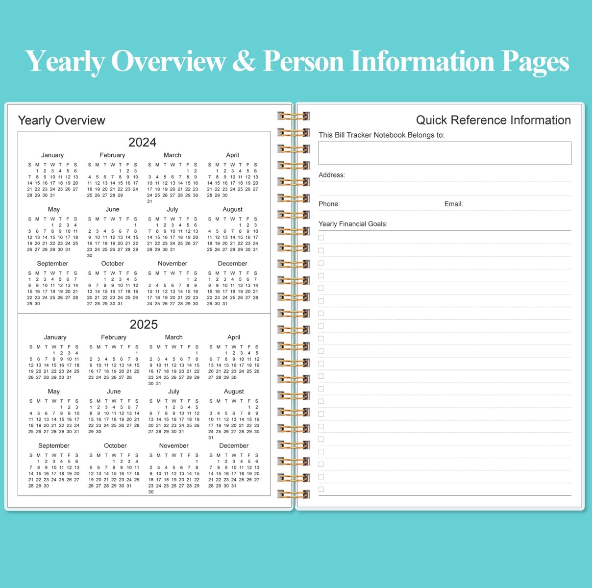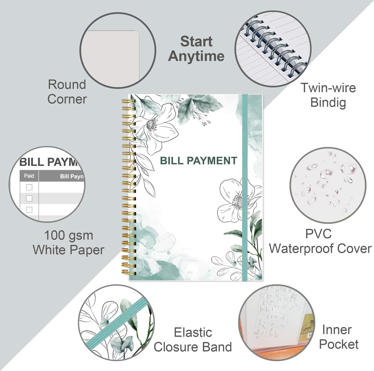 - HIGH QUALITY - The bill payment tracker spiral notebook size of 5.8" x 8.5", just the perfectly size to fit in your backpack, purse or laptop case. Bill payment tracker monthly organizer is used to high quality 100gsm pure white paper, elastic band and a back pocket for extra space. it comes with 3680 entry lines (29 lines per page), make sure you have enough space to take control of your finances.