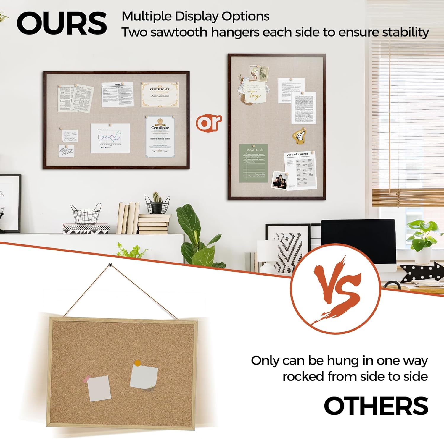 - Unique Design: Easily customize the board orientation to fit your space. Natural cork bulletin board add a classic look to your office or home. Both strong and stylish, it will be a great addition to your space.