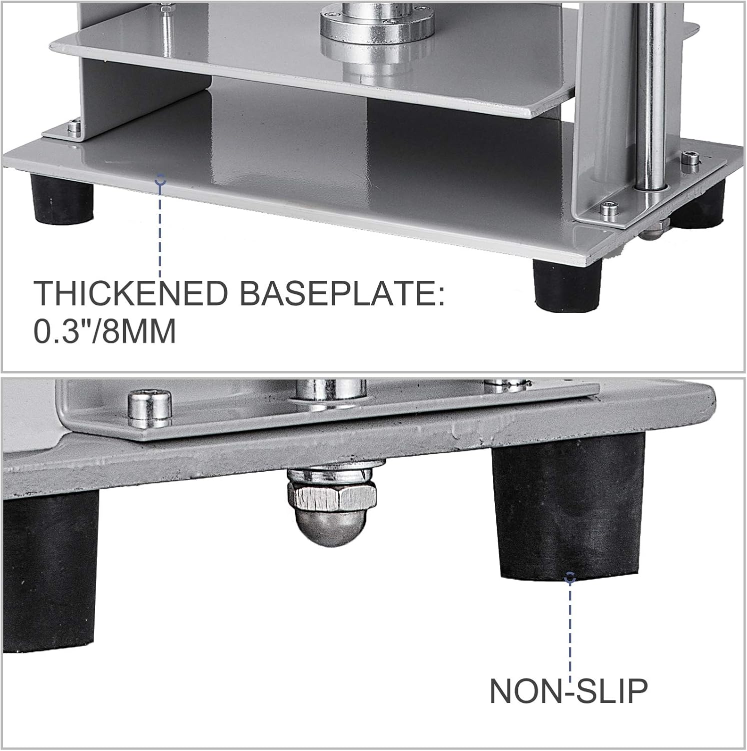 - Stable Structure: Non-slip foot pads reduce damage on the tabletop and increase friction to make the bookbinding tool more stable. On the other hand, two balance rods and 0.3"/8 mm baseplate thickness facilitate it to bear more substantial pressure evenly.