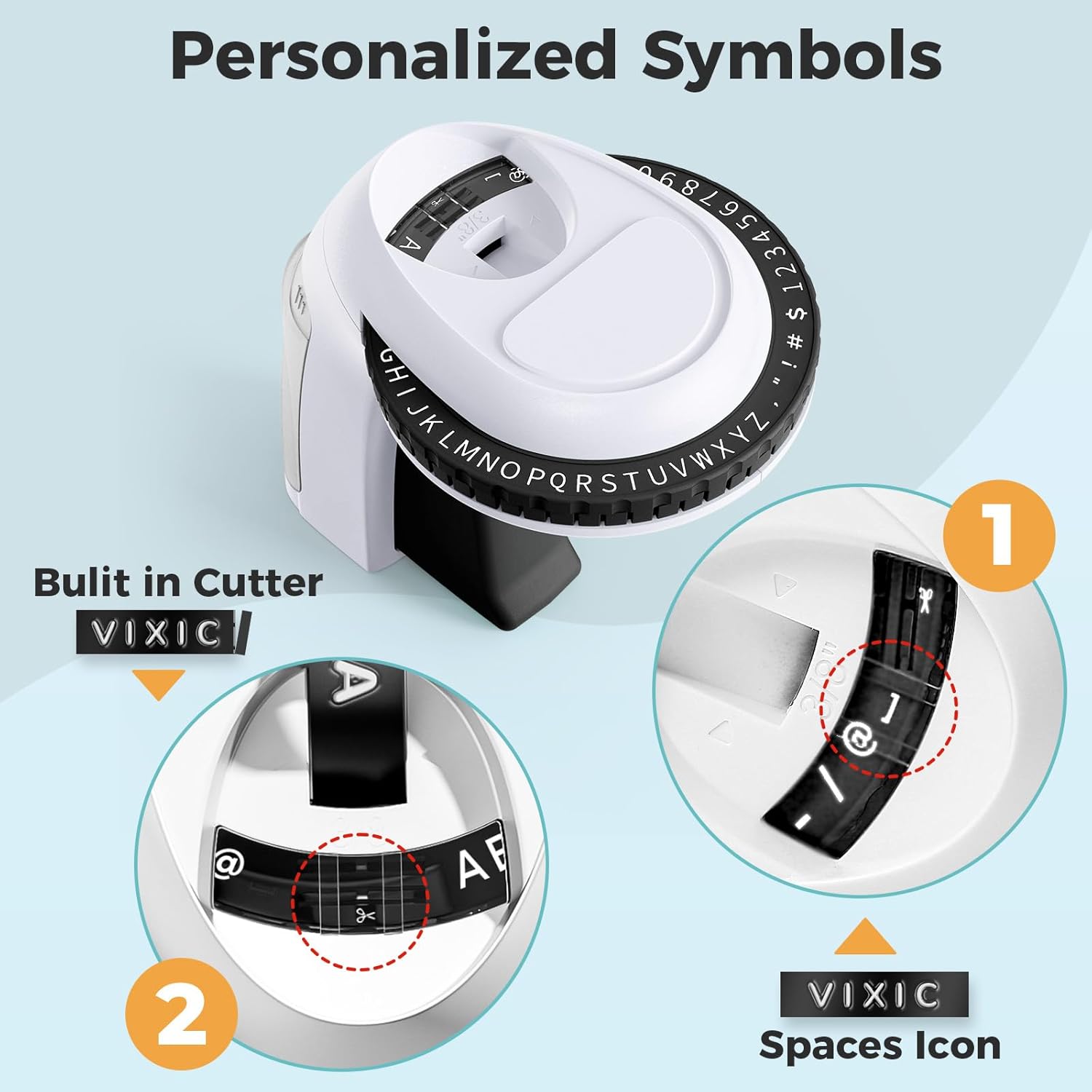 - Upgrade Version Vintage Embossing Label Maker Machine - Vixic embossed label maker manual is more user-friendly. 1.transparent handle for viewing consumption of embossing label tapes. 2.Featured wheel with 48 characters, including full English, numeric characters, and common symbols. 3.Ergonomic Design fits the curvature of your hand to make printing easier. 4. Embosser Label Maker Printing 3D effects embossing label tape for easier to read. 5.Built in cutting design is safer for kids and older