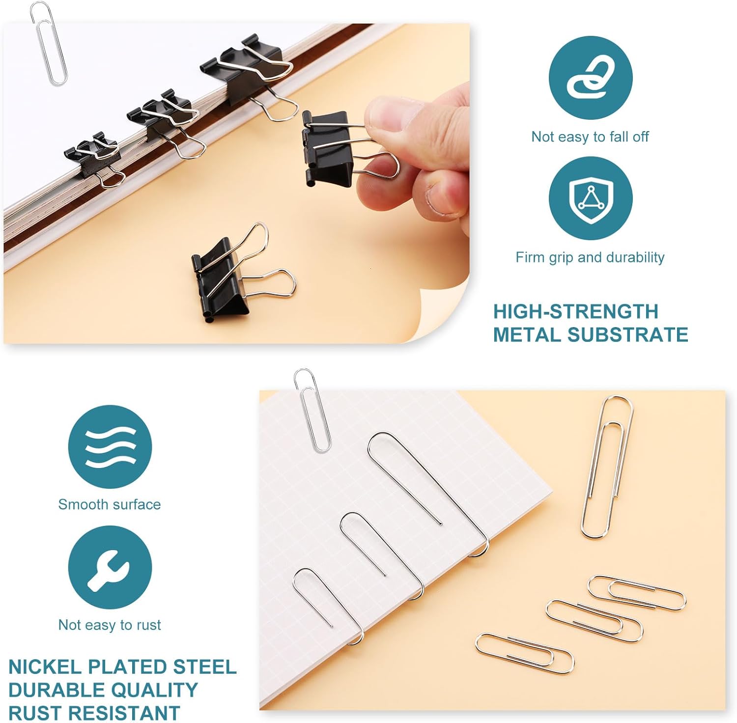 - ADAPTABLE APPLICATIONS: The paper clips and binder clips offer a multitude of uses for various purposes. Paper clips excel at temporarily fastening pages, while binder clips provide a secure grip for larger stacks of papers, making them well-suited for reports, presentations, or file organization.