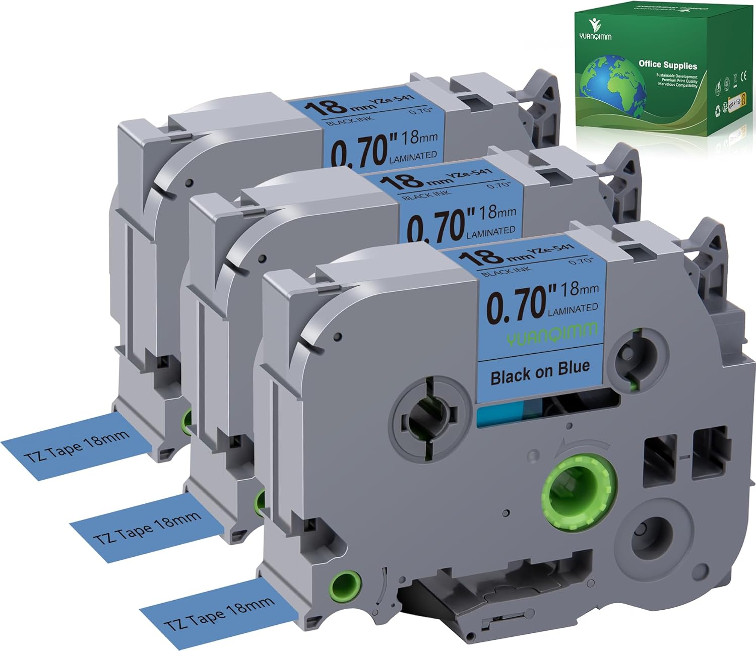 - Package included: 3-Pack Compatible with Brother PTouch TZe-541 TZ-541 TZe541 TZ541 18mm 0.7 Inch Black on Blue Label Maker tape