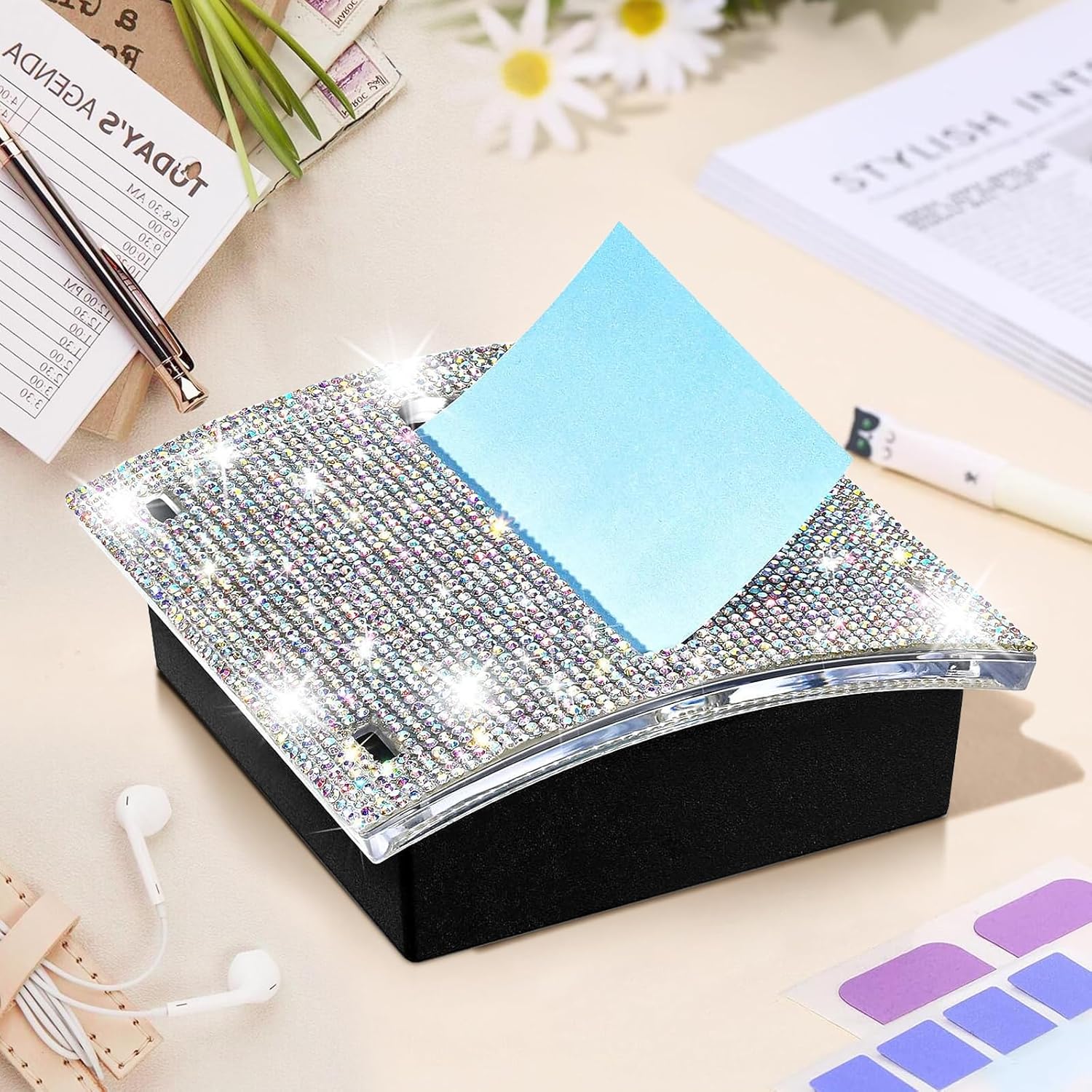 - 【Delicate Design】: The black base paired with the surface bling rhinestone makes the sticky note dispenser look stylish and elegant;The rhinestones on it are firmly attached and will not fall off easily. Meanwhile, the dazzling rhinestone holder is the focus of the desk, easy to find at a glance. It is a considerate present to your friends, relatives, colleagues, family, children.