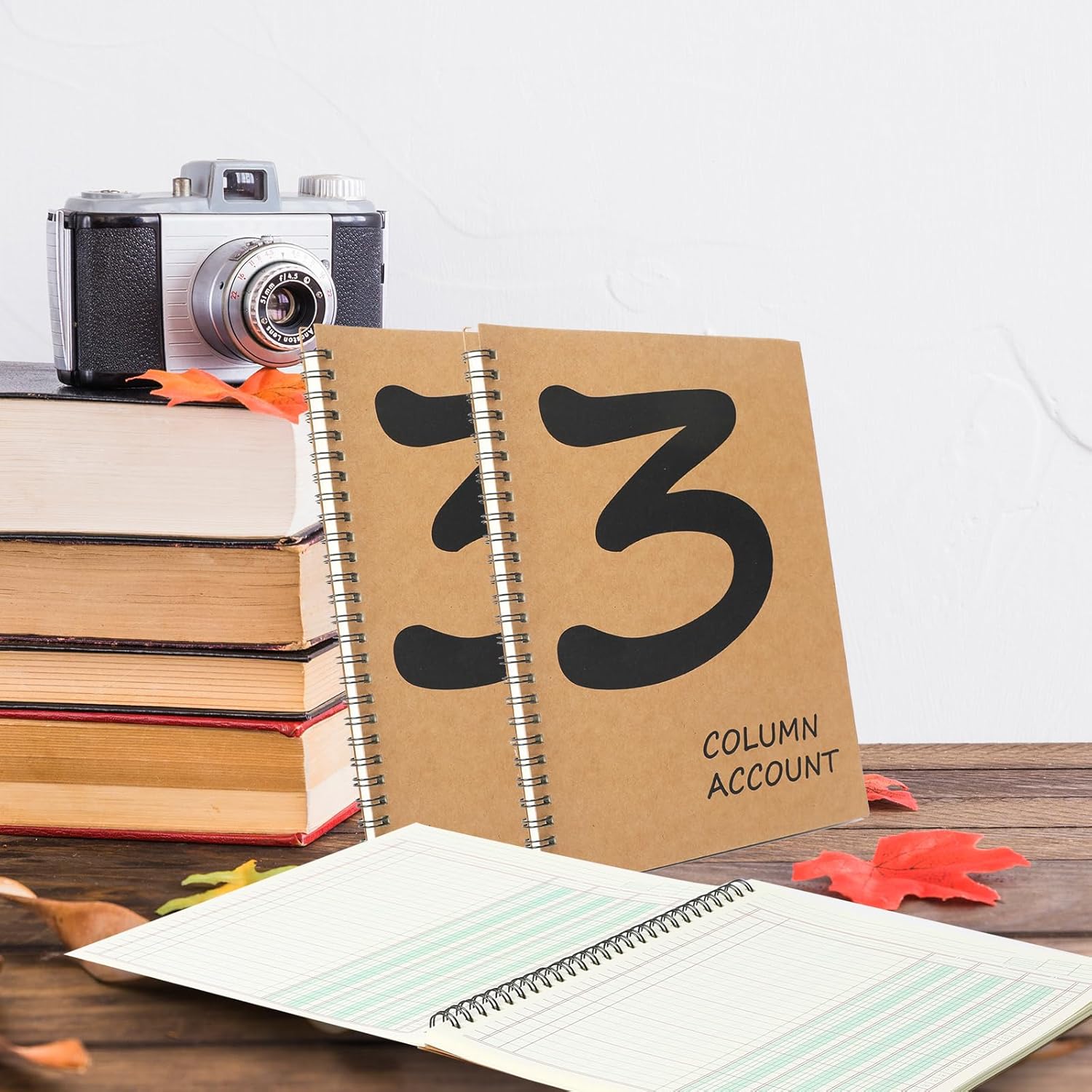 1Pcs Accounting Ledger Book 3 Column 7 * 9.25inch Columnar Notebook Columnar Pad 3 Columns Kraft Paper Cover 100 Pages for Personal Use Small Business(50 Sheet)