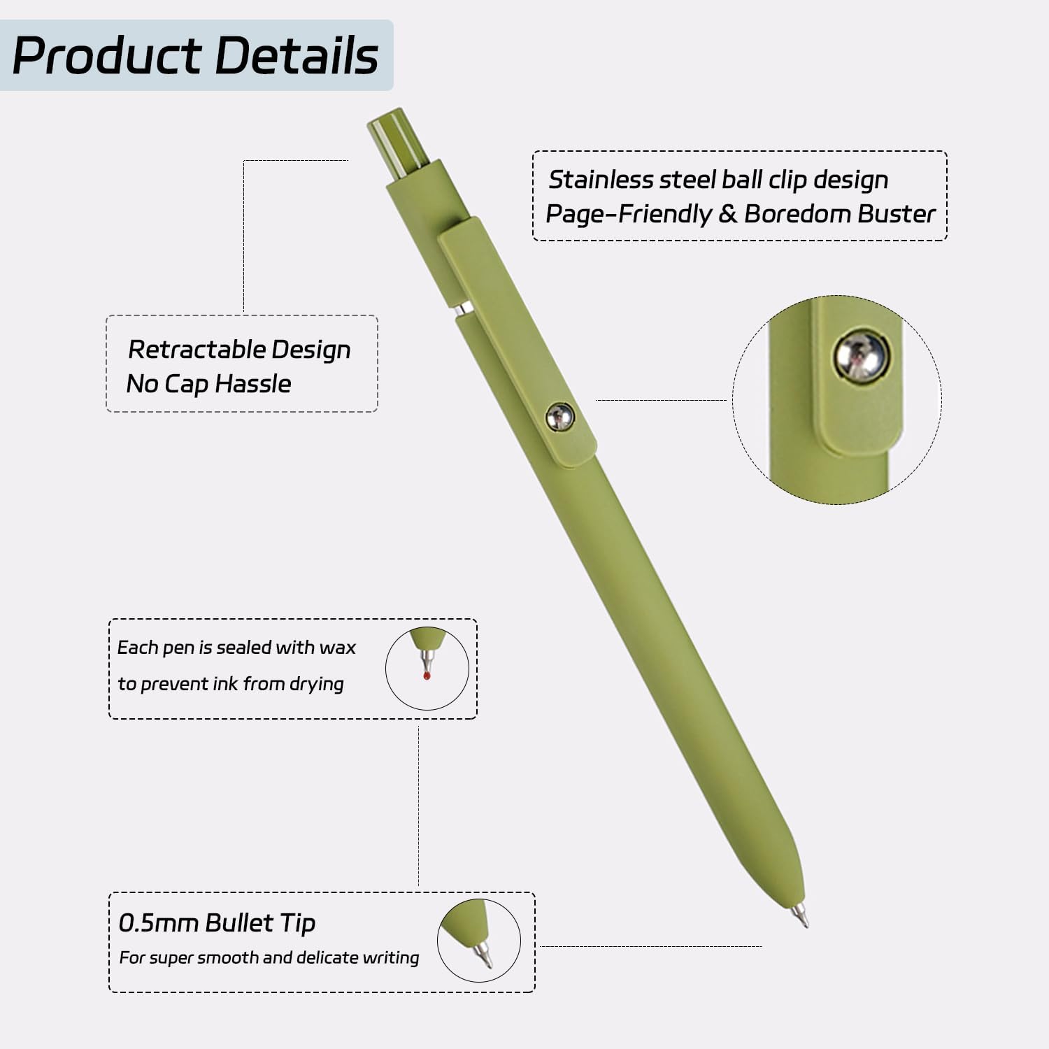- [Gel Pens Package] You will receive 5pcs quick-drying ink pens with a modern minimalist design, Soft silicone features grip bring a super soft touch feeling which makes each gel pen easy and comfortable to hold.