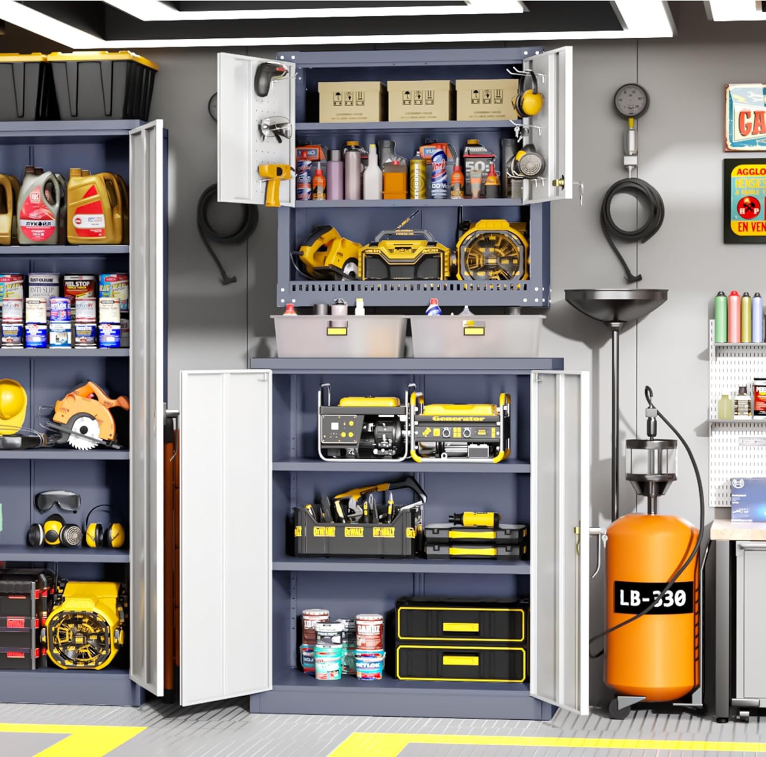 - [Excellent Material&Durability]:Greenvelly metal locking cabinet with doors and shelves is made up of 0.88mm cold-rolled steel plate.The surface of metal garage storage cabinet is coated with anti-corrosion and anti-rust coating,which makes it more durable and suitable for indoor and outdoor scenes,such as office,garage,home,school.