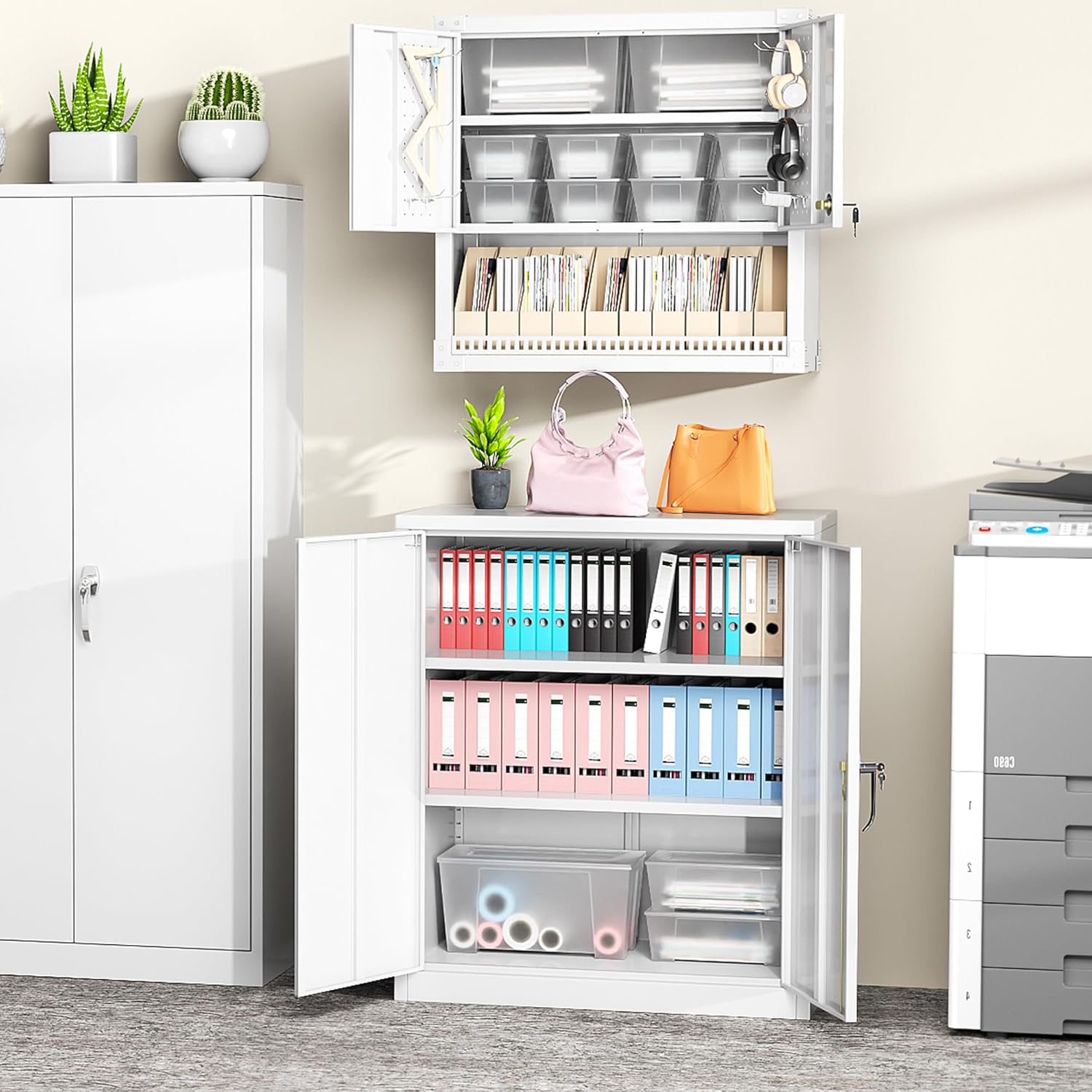 - [Excellent Material&Durability]:Greenvelly metal locking cabinet with doors and shelves is made up of 0.88mm cold-rolled steel plate.The surface of metal garage storage cabinet is coated with anti-corrosion and anti-rust coating,which makes it more durable and suitable for indoor and outdoor scenes,such as office,garage,home,school.