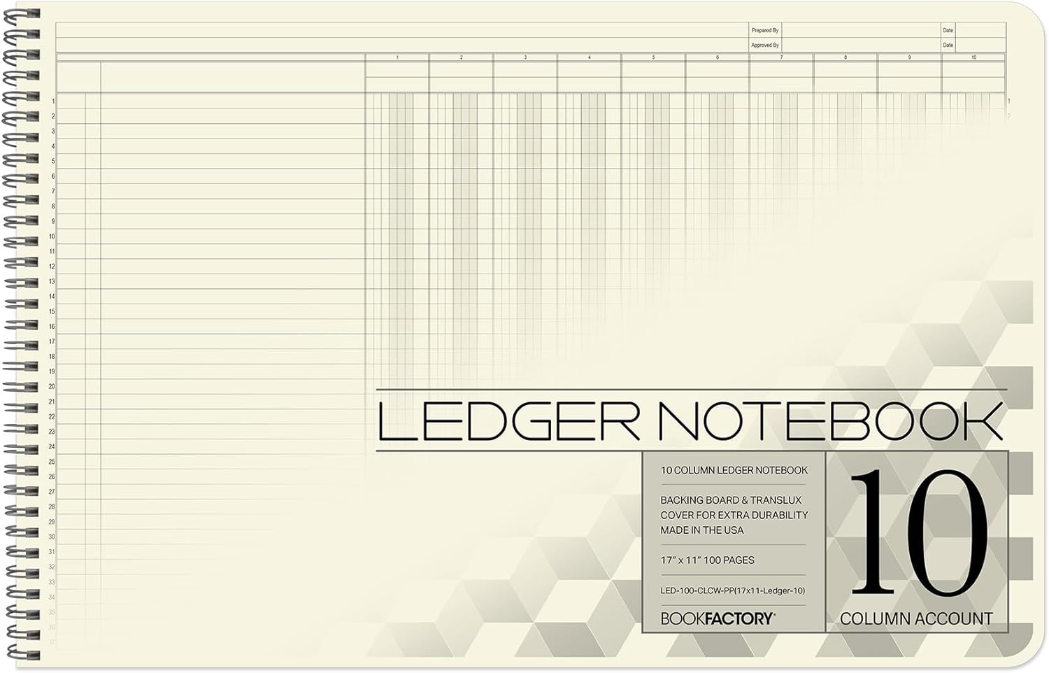 BookFactory Accounting Ledger Notebook/Large 10 Column Accounting Ledger Columnar (Ten Columns) Log Book - 17'' x 11'', 100 Pages, Wire-O Landscape Format (LED-100-CLCW-PP(17x11-Ledger-10)-AX)