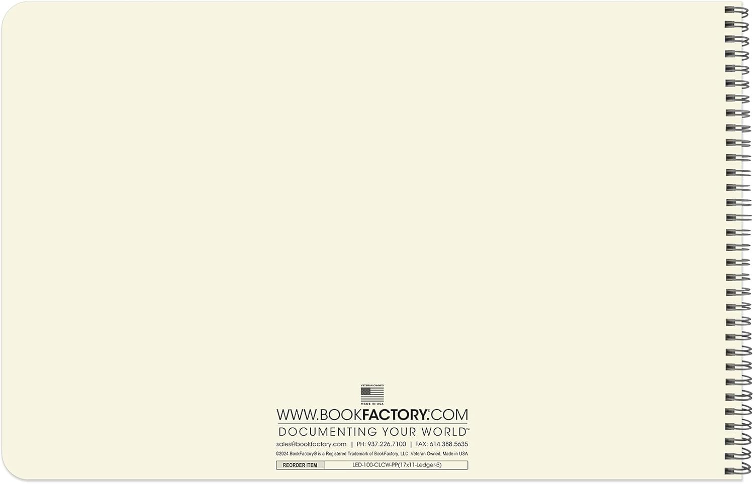 BookFactory Accounting Ledger Notebook/Large 5 Column Accounting Ledger Columnar (Five Columns) Log Book - 17'' x 11'', 100 Pages, Wire-O Landscape Format (LED-100-CLCW-PP(17x11-Ledger-5)-AX)