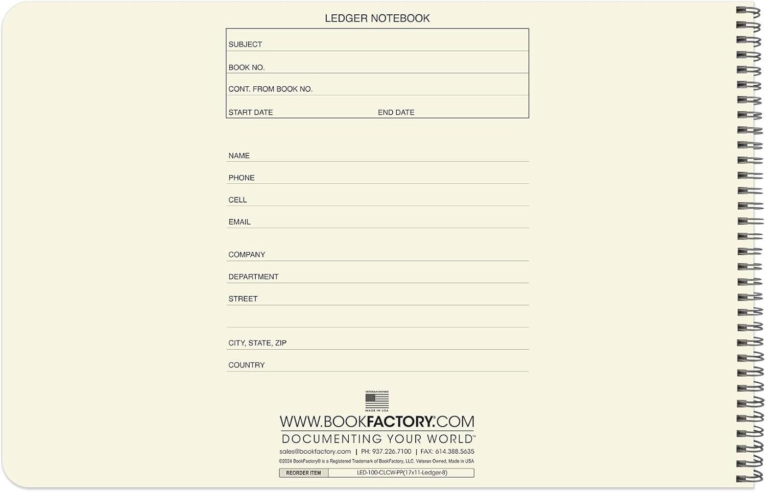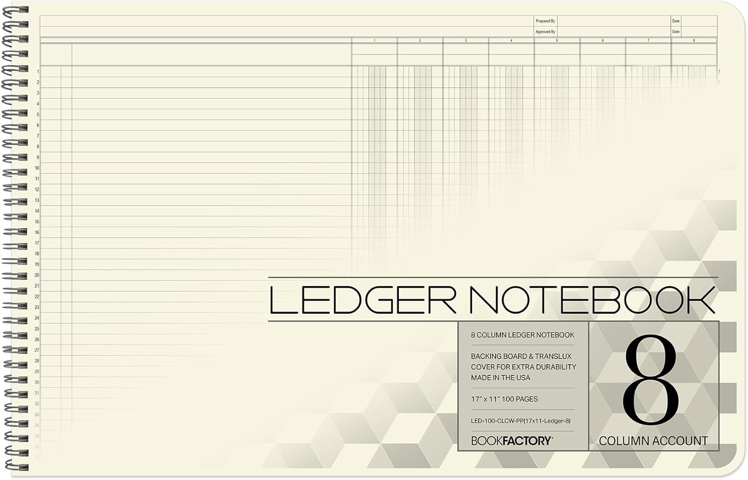 BookFactory Accounting Ledger Notebook/Large 8 Column Accounting Ledger Columnar (Eight Columns) Log Book - 17'' x 11'', 100 Pages, Wire-O Landscape Format (LED-100-CLCW-PP(17x11-Ledger-8)-AX)