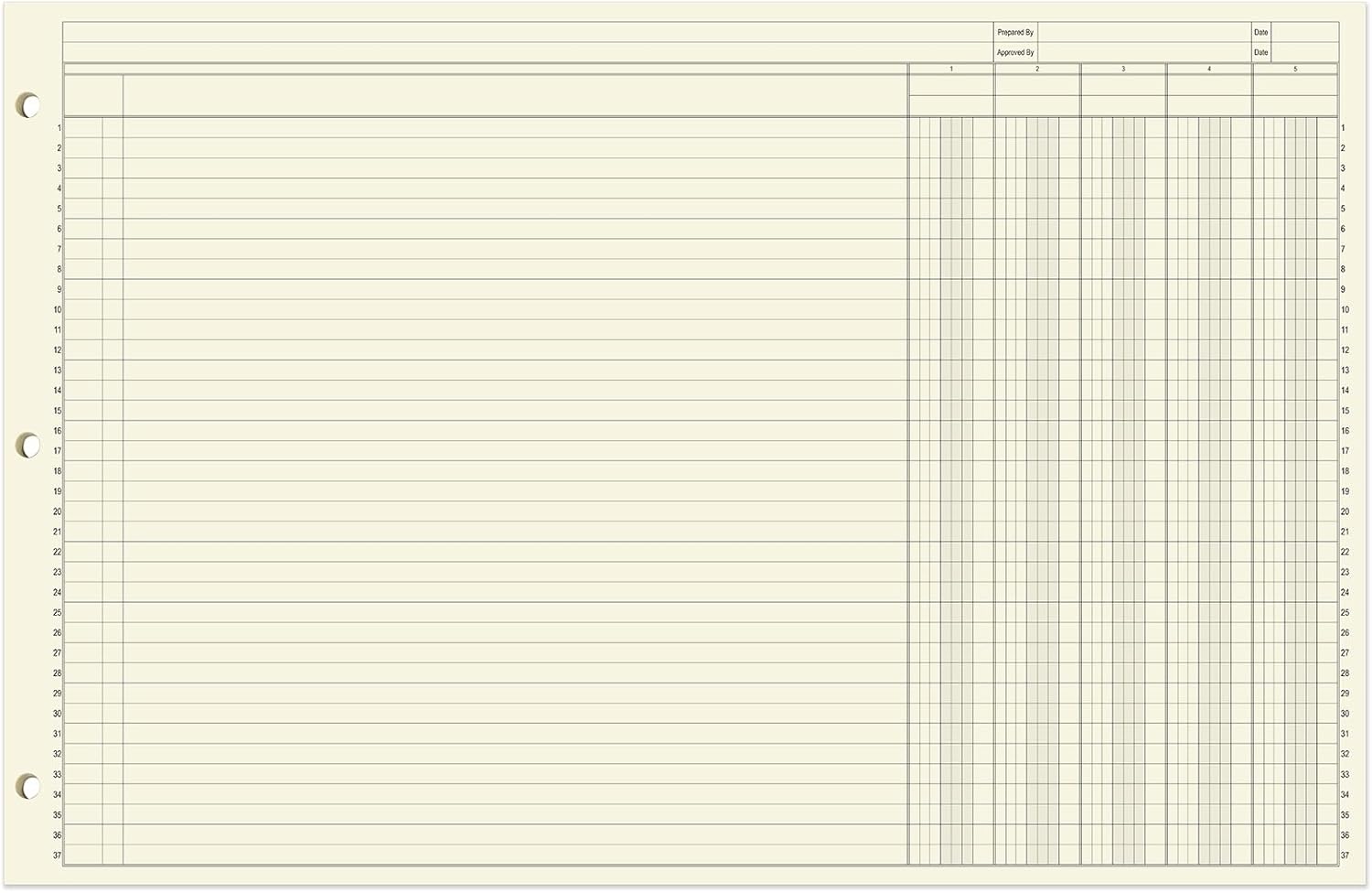 - Three hole punched for binders: There is a three hole punch on the side of these 17" x 11" loose leaf sheets so that you can put these sheets into any three ring binder used in your business. This loose leaf sheet format is the perfect way to integrate your bookkeeping sheets into any organization strategy you already use. The paper is archival quality and acid-free, keeping your financials safe for years.