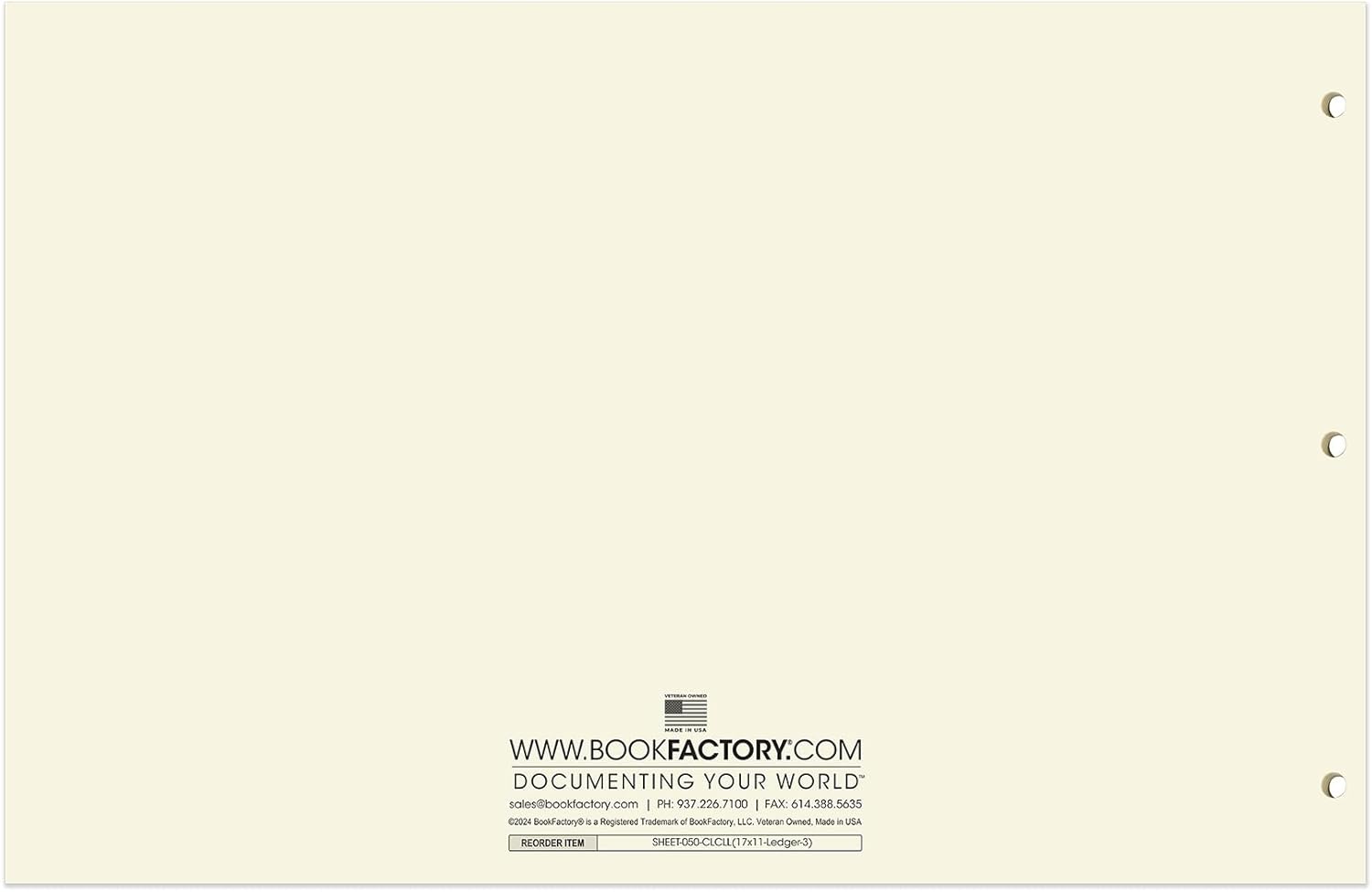 BookFactory Ledger Sheets/Large 3 Column Accounting Ledger Columnar (Three Columns) Loose Leaf Paper - 17'' x 11'', 50 Pages, Loose Leaf, 3 Hole Punched (SHEET-050-CLCLL(17x11-Ledger-3)-AX)