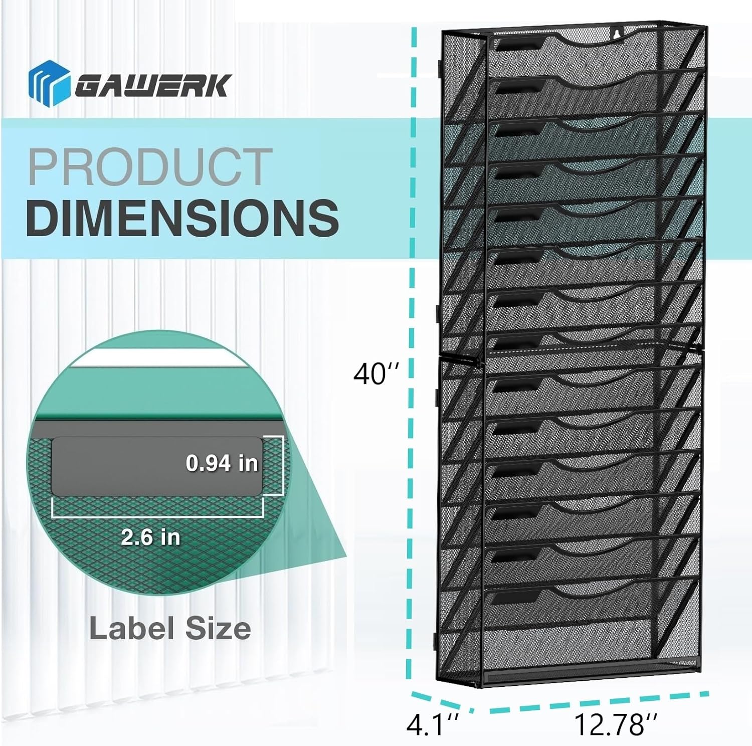 - Easy to Install - This mail organizer wall comes with mounting screws, you only need to drill 2 holes to mount it to the wall. And Our 15-tier wall paper organizer has an elegant look design with upgraded powder coat finish, anti-oxidation and anti-rust, which is enough for many years.