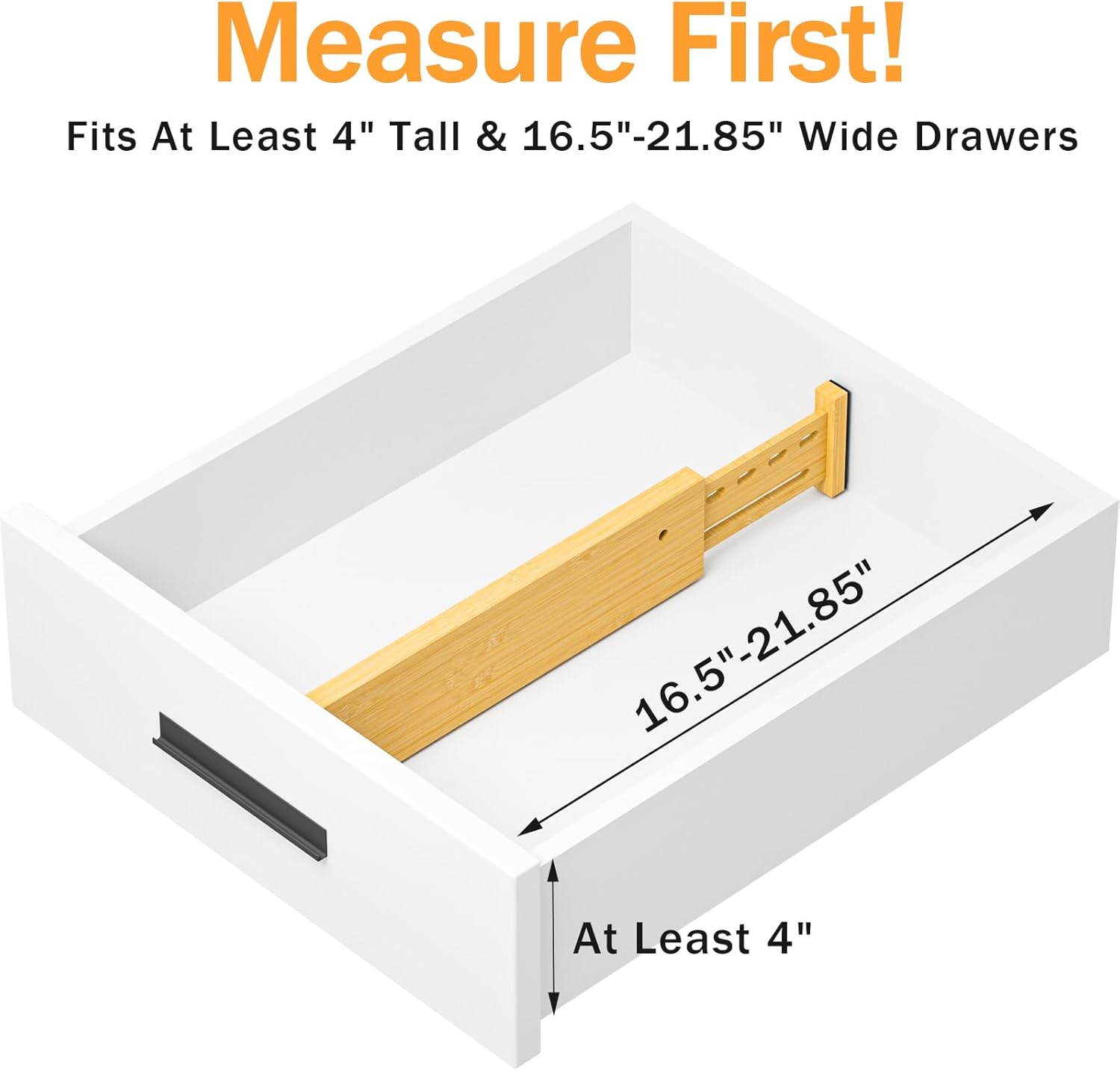 Bamboo Drawer Dividers 4" High, 16.5-22" Adjustable Drawer Organizers for Clothes,Expandable Dresser Separators in Bedroom/Kitchen/Bathroom/Office Organization and Storage,4 Pack
