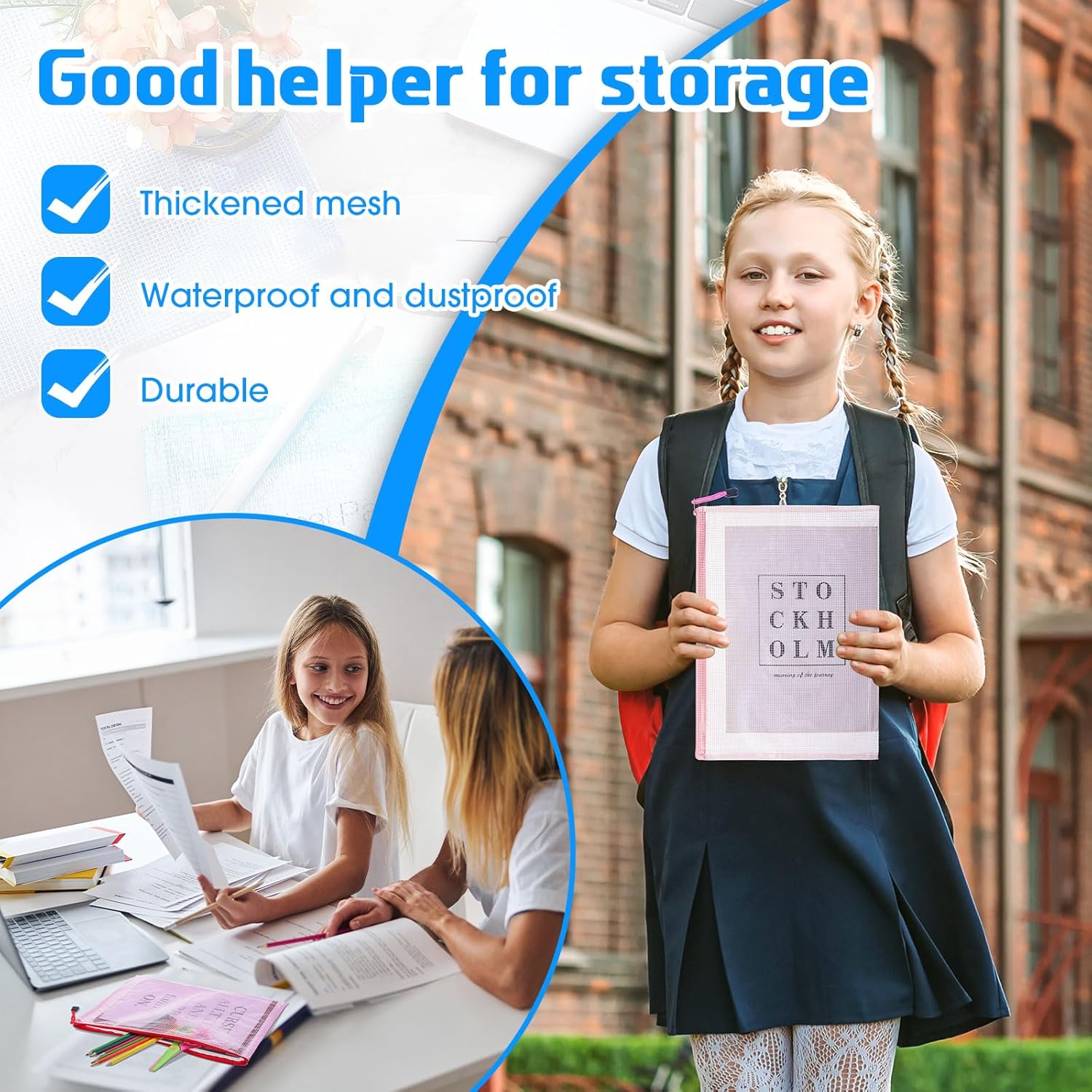 200 Pcs A4 Mesh Zipper Pouch Bulk Waterproof Mesh Zipper Organizer Plastic File Folder Case for School Office Supplies Document Board Games Puzzle(Colorful)